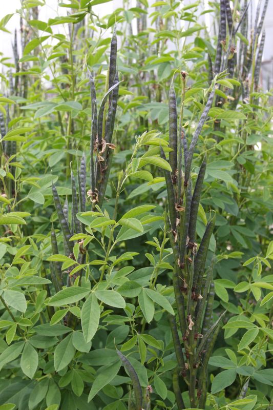 Morfoloģija. 50-80 cm augsts daudzgadīgs augs. Stumbri stāvi, kantaini, ar baltiem matiņiem augšdaļā, bet apakšdaļā kaili. Lapas zaļas, trīsstaraini saliktas. Lapiņas plati eliptiskas, 3,5-8 cm garas un (2) 2,5-3,5 (4,7) cm platas, ar platu ķīļveida pamatni, gals smails vai apaļš. Galējā lapiņa lielāka par pārējām, plati lancetiskas, apakšpusē ar baltiem matiņiem, virspusē kailas. Seglapas eliptiskas līdz sirdsveida, 2-5 cm garas un 1,5-3 cm platas, tikpat garas kā kātiņš. Ziedi dzelteni, 2-2,5 cm gari, galotnes ziedkopās ar daudziem ziediem, kas ir 5-18 (25) cm garas, ziedi pamīšus sakārtoti. Zied jūnijā – augustā. Auglis – 3-9 (12) cm garas un 0,5-0,8 cm platas pākstis.