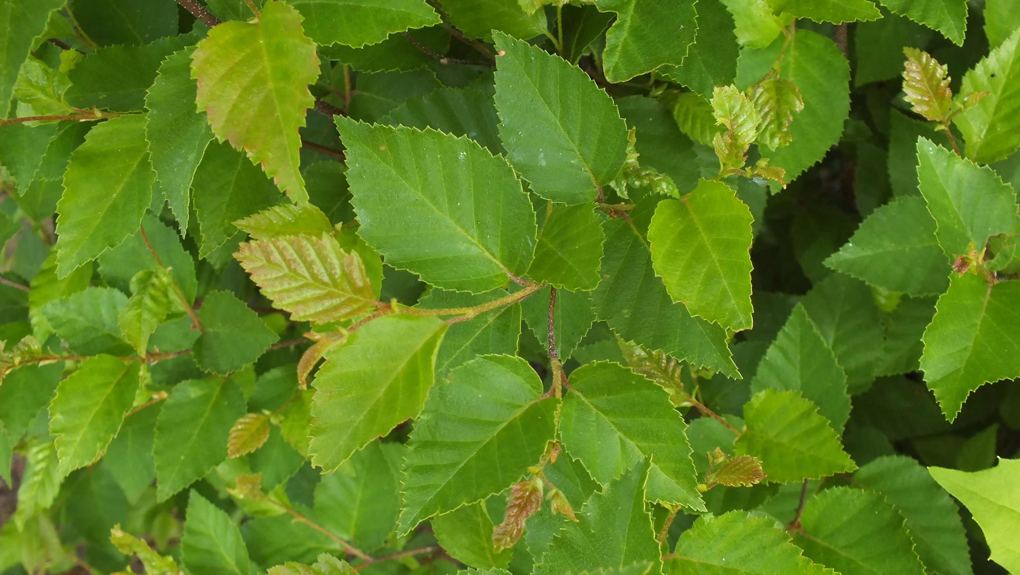 Morfoloģija. Vasarzaļš, līdz 30 m augsts koks ar ļoti resniem zariem. Miza tumši pelēka vai gandrīz melna, gluda vai saplaisā biezās plātnēs. Zari tumši brūni vai gandrīz melni, ar baltām lenticelēm. Jaunie dzinumi ar dziedzermatiņiem. Lapas olveida vai olveida iegarenas, ar noapaļotu vai plati ķīļveida pamatu un nosmailotu galotni, ar nevienādi zobainām malām, 4-8 cm garas. Lapu dzīslas virspusē iegremdētas, apakšpusē izceltas. Plātnes virspuse koši zaļa un kaila, apakšpuse ar retiem, sveķainiem dziedzerīšiem un matiņiem uz dzīslām. Sievišķās spurdzes iegarenas, stāvas, taisnas vai viegli izliektas, 2-3 cm garas.