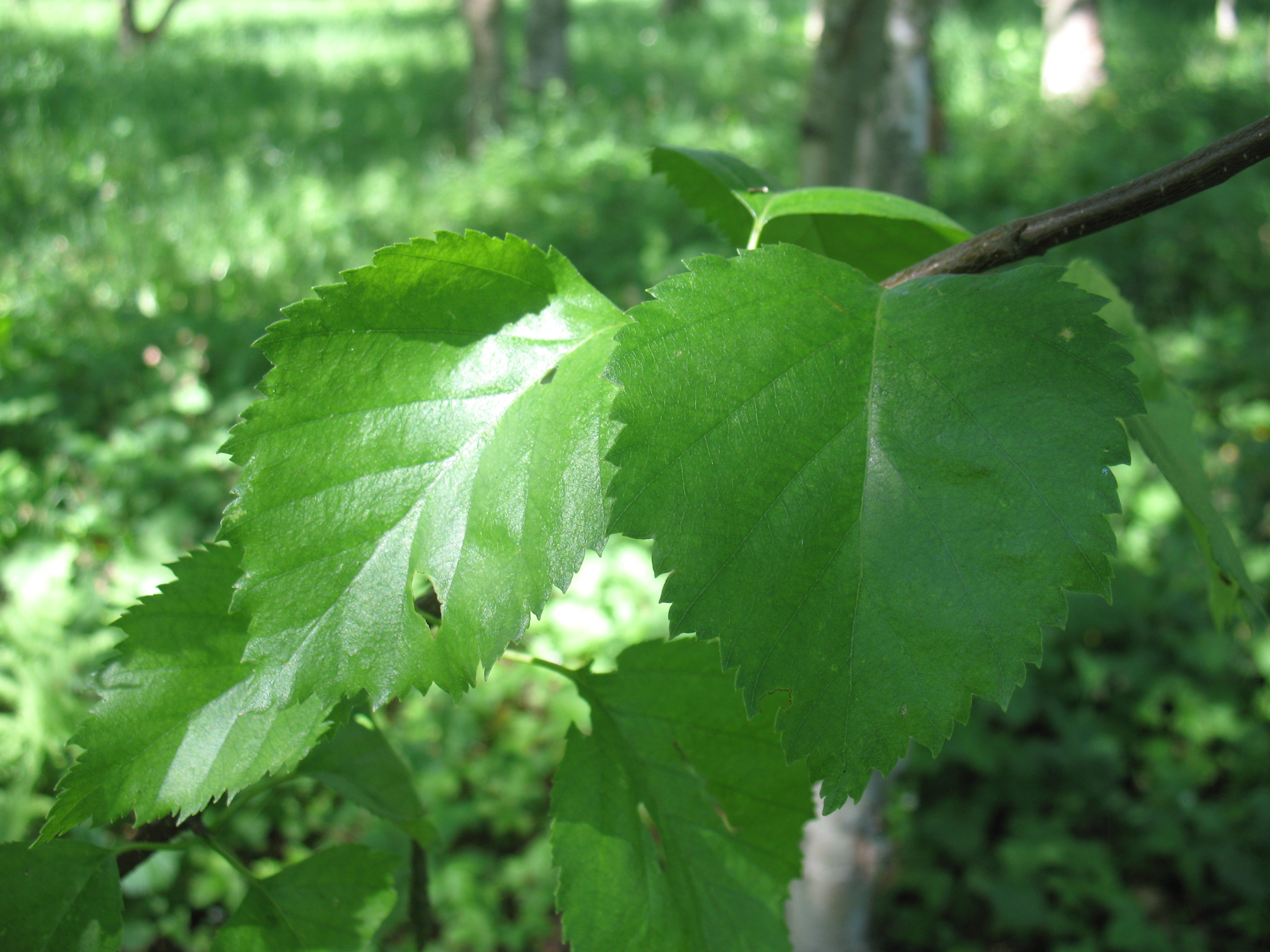 Morfoloģija. Vasarzaļš, līdz 12 m augsts koks. Miza dzeltenbalta vai dzeltenbrūna, tā lobās biezām, lielām plēksnēm. Zari pelēkbrūni vai tumši brūni, kaili. Jaunie dzinumi mataini vai tūbaini, ar retām, sveķainām kārpiņām. Lapas plati olveida vai rombiskas, abās pusēs ar sveķainiem dziedzerīšiem, jaunās tūbainas, pamats ķīļveida, galotne smaila, malas plati dubulti zobainas. Sievišķās spurdzes iegareni cilindriskas, 1-4 cm garas, nokarenas, ar tūbainiem kātiņiem.