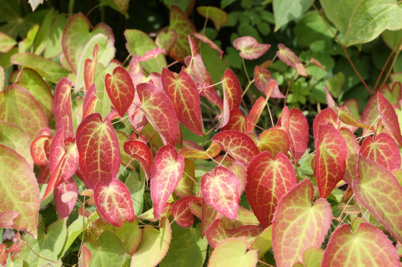Morfoloģija. Lapas 20 cm garas un 30 cm platas, 2–3 reizes trīskāršas, parasti ar 11–15 lapiņām. Lapiņas eliptiskas līdz sirdsveida, ar sirdsveida pamatu, 6–9 cm garas un 3.5–6.5 cm platas. Ziedi sarkanīgi rozā, gaiši dzelteni iekšpusē, līdz 2 cm diametrā, sakārtoti skrajās ziedkopās pa 8–26 ziediem. Zied maijā–jūnijā.