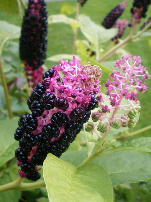Morfoloģija. Stublāji stāvi, zaļi vai sarkanīgi violeti, cilindrveida, ar dzīslām, gaļīgi, zaroti. Lapas eliptiskas līdz lancetiski eliptiskas, 10–30 cm garas un 4.5–15 cm platas, papīrveidīgas, ar plati ķīļainu pamatu, diezgan asu līdz asu galu, 1.5–3 cm garu kātu. Ziedi balti, dzeltenzaļi vai rozā, sakārtoti gala, cilindrveida, blīvā sakopotā ziedkopā. Zied vasarā. Augļi, kad nogatavojas, ir purpurmelnas ogas.