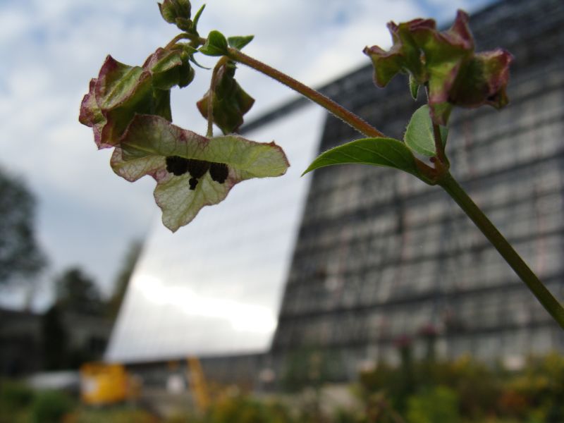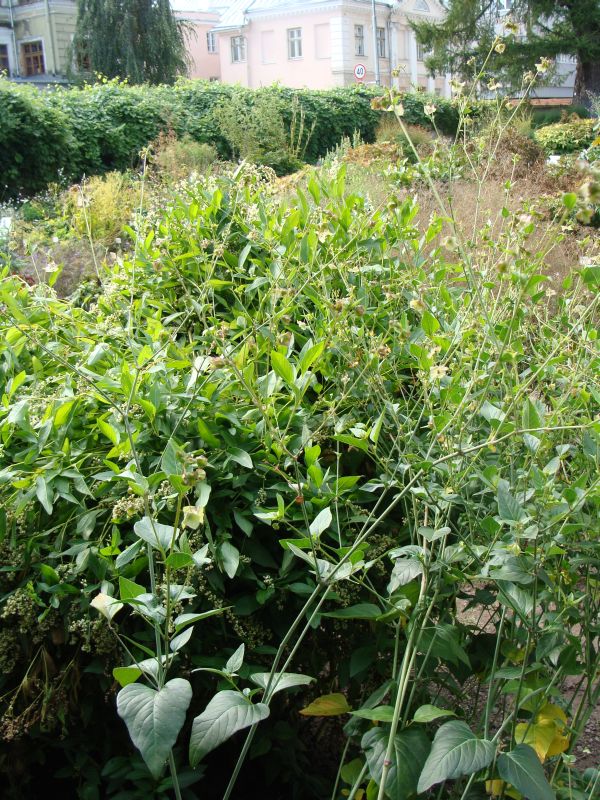 Morfoloģija. Stublāji stāvi, nav zaroti, nesegti, apakšējās daļās kvadrātveida, augšējās daļās apaļi, gaiši zaļi. Lapas tumši zaļas, pretējas, līdz 10 cm garas un 7–6 cm platas, sirdsveida vai trīsstūrainas, nesegtas, ar veselu malu, īsu kātu. Dažas augšējās stublāja lapas daudz mazākas un lancetiskas. Ziedi rozā līdz violeti, trompetveida, līdz 1.3 cm diametrā, sakopojumos pa 3–5 ziediem. Zied agri rudenī. Ziedi atveras vēlā pēcpusdienā, paliek atvērti nakts laikā, aizveras agri no rīta.