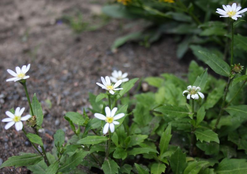 Morfoloģija. Stublāji stāvi. Lapas iegarenas, matainas, ar robainu malu. Ziedi balti vai gaiši zili, 3.8 cm diametrā. Zied septembrī–oktobrī.