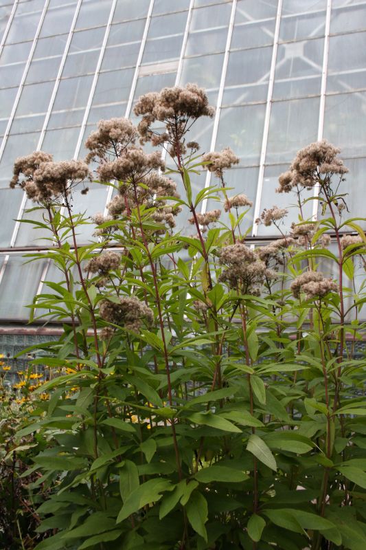 Morfoloģija. Stublāji stāvi, violeti, stīvi, cilindrveida. Lapas lancetiskas, tumši zaļas, līdz 30.5 cm diametrā, ar zobainu malu, mieturos pa 3–4 ziediem. Ziedi tumši rozā līdz sārti purpursarkani, mazi, smaržo pēc vaniļas, sakopotas lielās, gala, izliektās, saliktās ziedkopās. Zied jūlijā–septembrī.