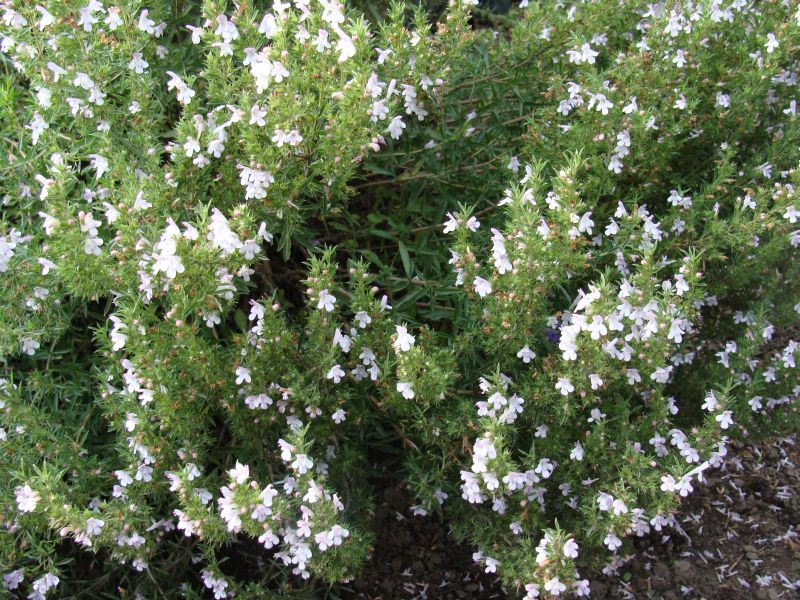 Morfoloģija. Stublāji pacēlušies, kvadrātveida, koksnaini pie pamata, gaiši brūni. Lapas lineāri lancetiskas, mūžzaļas, ar asu galu. Ziedi balti, augšējā lūpa rozā, rīklei ir sarkani plankumi, ziedi sakārtoti vairogā pa nedaudziem kopā, mezglos. Zied jūlijā–augustā.