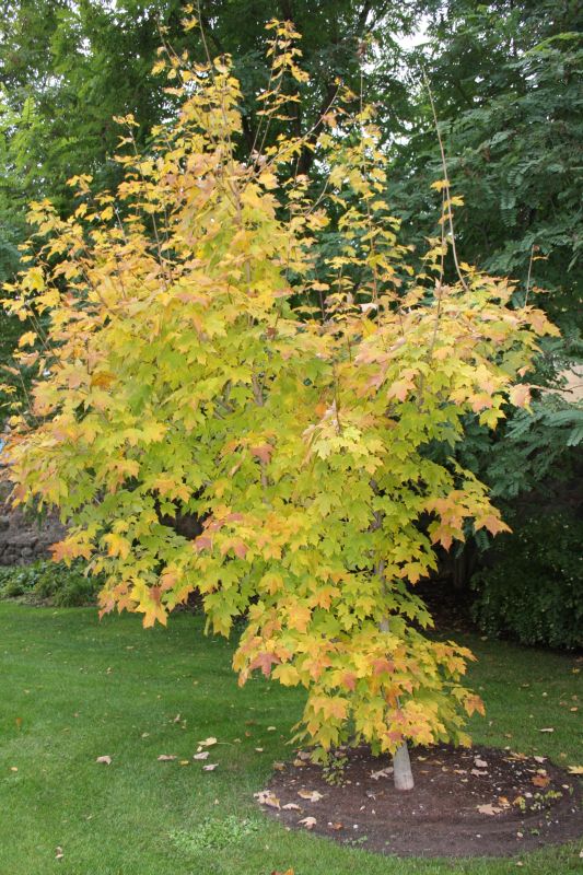 Morfoloģija. Dzinumi spoži brūni, kad jauni, nesegti, ar retiem, tumšākiem virsmas ķeksīšiem. Lapām 3–5 daivas, kā kļavas lapas, 5–15 cm garas un 8–15 cm platas, ar sirdsveida pamatu, ar dažiem robojumiem daivu galos, apakšējai daļai vesela mala, augšpusē blāvs, apakšpusē zaļš, nesegts līdz matains. Rudeņos lapas kļūst oranžas līdz sarkanas. Kāts līdz 8 cm garš, sarkanīgs. Ziedi dzeltenzaļi, nokareni, sakārtoti līdz 7 cm garos virpuļos pa nedaudziem kopā, kāti mataini. Zied pirms salapošanas aprīlī–maijā. Augļi ir līdz 4 cm gari, dvīņspārnaini, piestiprināti asā leņķī.