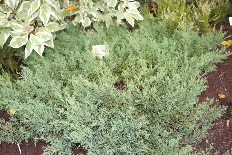 Morfoloģija. Dzinumi plakani, tuvu pie zemes. Skujas pelēcīgi zilas, mīkstas, īsas, ziemā bronzkrāsas violetas.