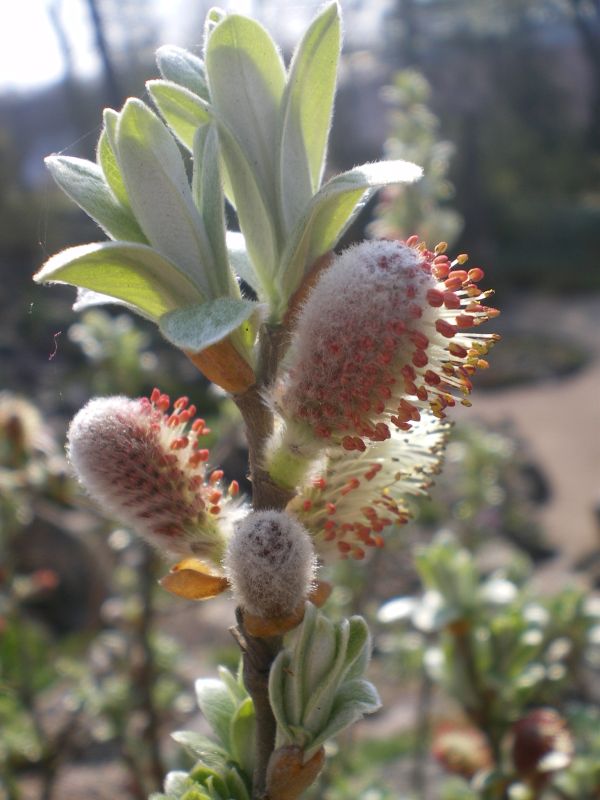 Morfoloģija. Augam apaļš vainags. Ziemā dzinumi dzelteni. Lapas sudrabaini pelēkas, baltas apakšpusē, filcainas, 2–8 cm garas un 1–3 cm platas, iegarenas. Spurdzes krēmkrāsas, iegarenas, 1–3 cm garas, parādās pirms salapošanas. Zied aprīlī–maijā.