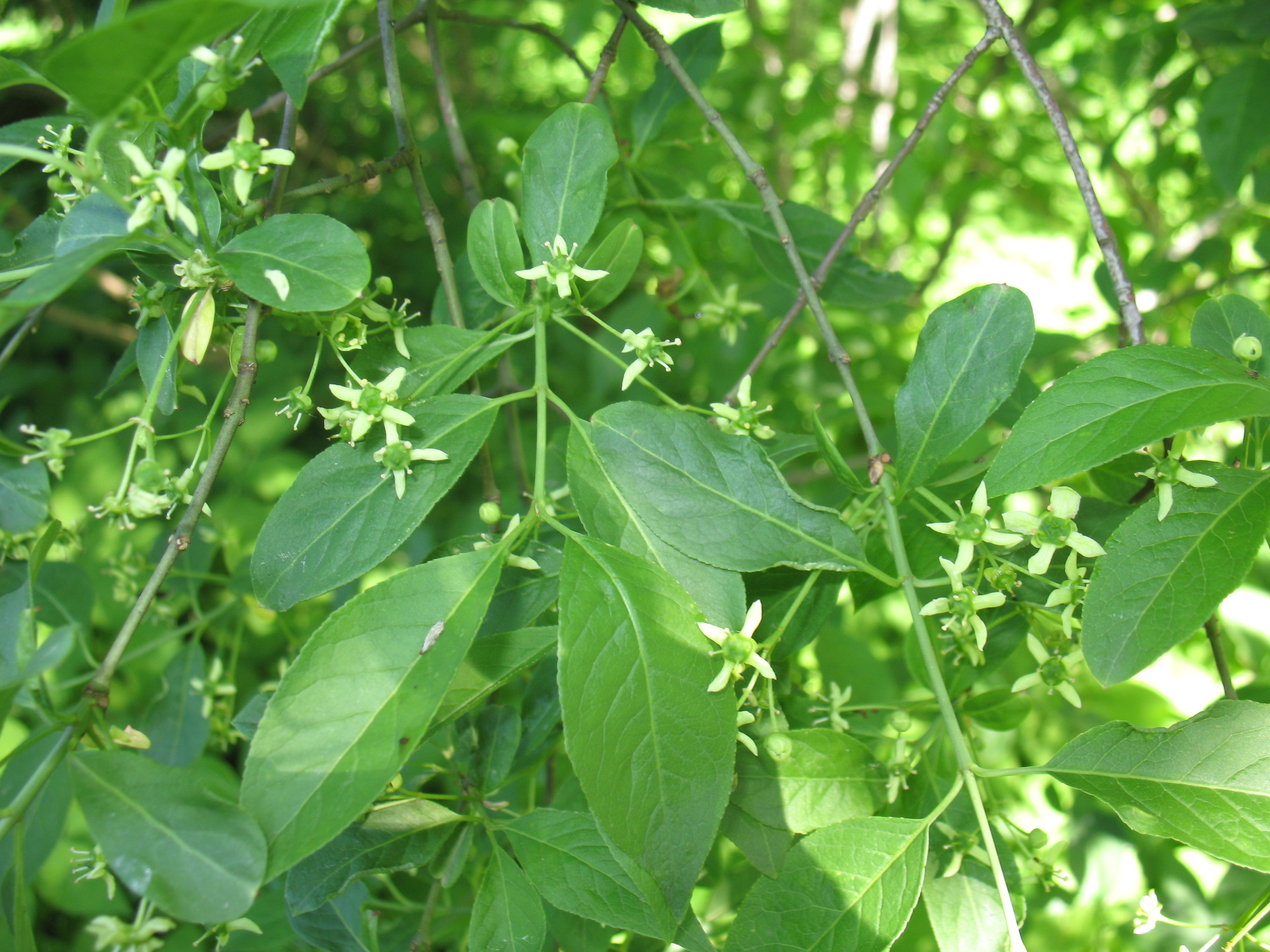 Morfoloģija. Vasarzaļš, līdz 8 m augsts koks, nereti krūms, ievainots veido daudz atvašu. Jaunie dzinumi zaļi, četršķautņaini, ar brūnganiem valnīšiem. Vecāko zaru miza pelēcīga vai gandrīz melna. Lapas kailas, lancetiski olveida vai iegareni olveida, galotnē pakāpeniski pāriet garā smailē, pamats ķīļveida vai noapaļots, malas sīki zāģzobainas un dažkārt viļņainas. Ziedkopas taisnas, ar 2-7 ziediem. Ziedi 8-12 mm plati, vainaglapas zaļganbaltas, iegareni otrādi olveida, pogaļas četrdaļīgas, 9-12 mm platas, nobriedušas sarkanīgas vai rozā. Sēklas sarkanbrūnas.