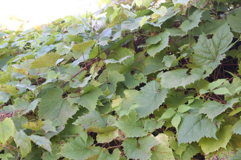 Morfoloģija. Jaunie dzinumi gludi, kad ir jauni, nesegti, vecajiem ir plaisas. Lapas plati olveida, līdz 18 cm garas, parasti trīskāršas, ar platu šķēlumu uz pamata, zobainu malu, spožu virspusi, spilgti zaļas, ribas matainas apakšpusē. Ziedi balti vai zaļgani, sakārtoti 4–15 cm garos virpuļos, aromātiski. Zied maijā–jūnijā. Augļi līdz 0.8 cm platas ogas, violeti melnas.