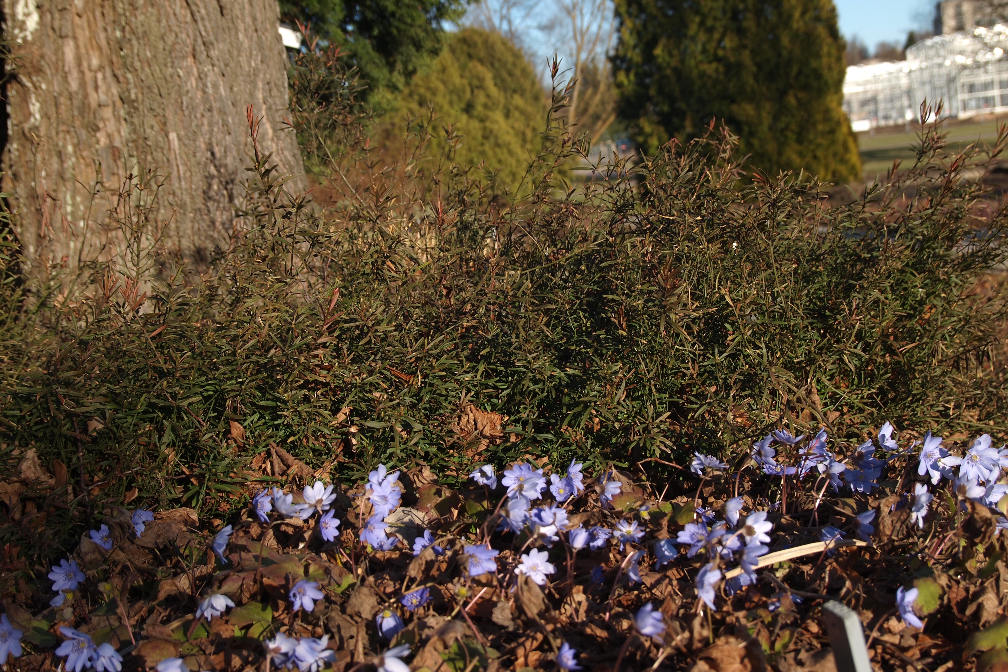 Morfoloģija. Mūžzaļš, ložņājošs, līdz 1 m augsts krūms, kas viegli apsakņojas. Jaunie zari gareniski izvagoti, zaļi, vecākie pelēcīgi brūni, ar daudzām kārpveida lenticelēm. Lapas šauri lancetiskas vai iegarenas 1-4 cm garas, ar ieritinātu malu, ādainas, virspusē koši zaļas, ar iegrimušu vidusdzīslu, apakšpusē zilganas. Ziedi četrlocekļu, 5-7 mm plati, pa 1 vai pa 2-3, vainaglapas zaļganas vai sarkanbrūnas. Pogaļas 9-12 mm platas, bez spārniem, nobriedušas rozā vai dzeltenīgas. Sēklas apaļas, brūngansarkanas.