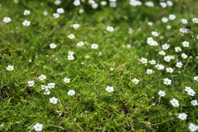 Morfoloģija. Stumbri rievaini, ložņājoši, zaroti. Lapas ziemzaļas, gaiši zaļas, ar smailiem galiem, kas ir līdz 1 cm gari. Ziedi balti, mazi, 4-5 mm gari, pa vienam stublāja un zaru galos. Zied jūnijā – jūlijā.