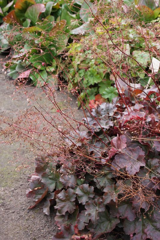Morfoloģija. Lapas purpurkrāsas, rozetē, apaļi sirdsveidīgas, ar gariem kātiem, daivainas, ar zāģzobainu malu. Ziedi balti, mazi, uz tieviem kātiem. Zied jūnijā un jūlijā. Auglis – pogaļa.