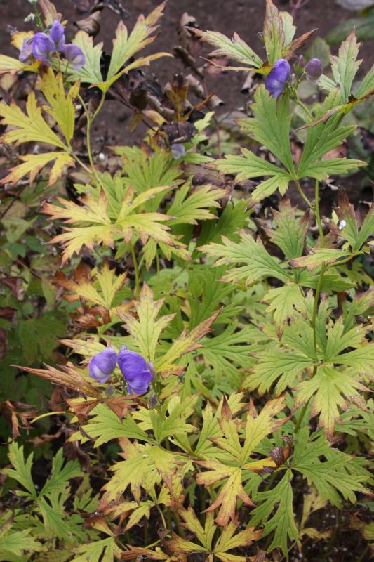 Morfoloģija. Stublāji noliekušies. Lapas spīdīgi zaļas, plūksnainas, ādainas, 18 cm platas. Ziedi zili, 4-4,2 cm gari, augšējā kauslapa kapucveidīga. Zied augustā, septembrī. Auglis – someņu kopauglis.