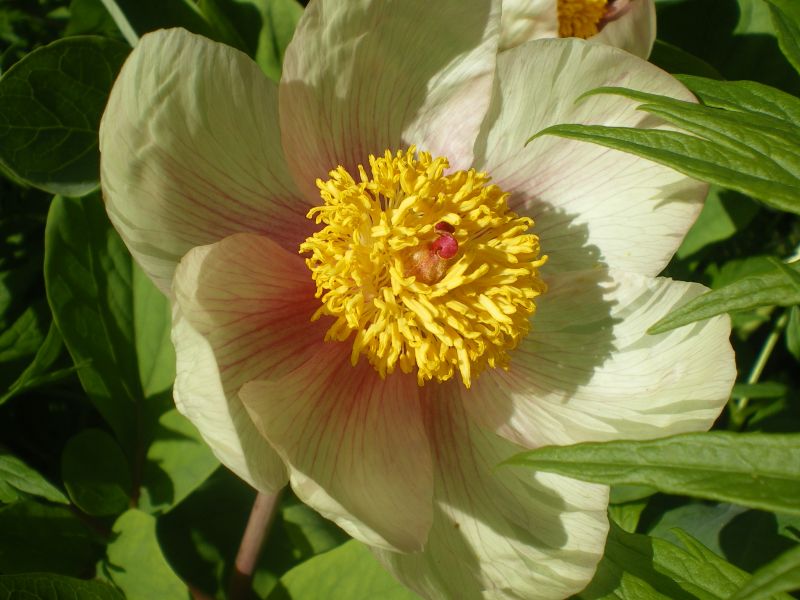 Morfoloģija. Kāti stāvi. Lapas daivainas, jaunas lapas lancetiskas, olveida lancetiskas, 4,5-16 cm garas un 1,5-4,8 cm platas, reti plūksnainas, ar plūksnainu dzīslojumu. Ziedi balti, veseli, 8-13 cm diametrā, ar daudziem ziediem uz kātiem. Zied maijā - jūnijā. Auglis ir somenis.