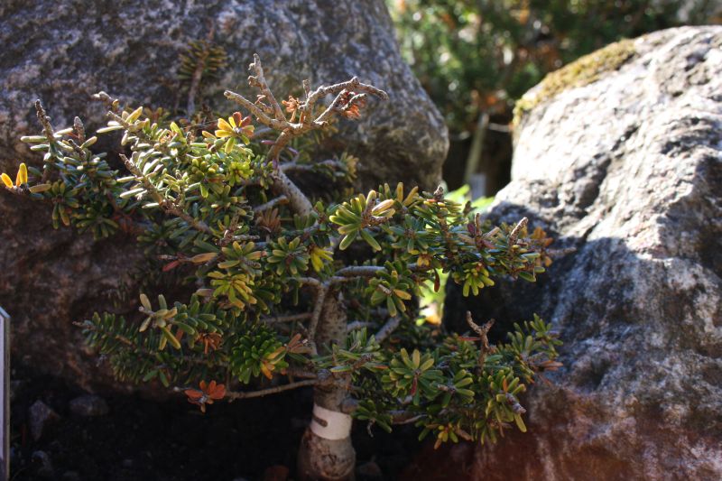 Morfoloģija. Skujas tumši zaļas, īsas, neasas, reti sakārtotas; stāvas, kamēr aug, stīvas.