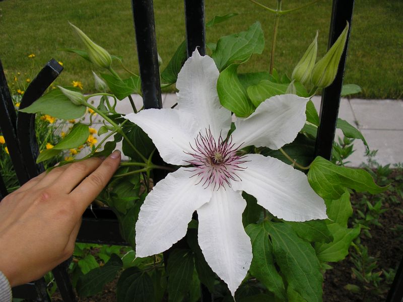 Morfoloģija. Lapas trīsdaivaini saliktas, var parādīties arī veselas lapas. Ziedi balti, 20 cm diametrā, ar 6-8 eliptiskām lapām. Putekšņlapas purpursarkanas. Zied jūlijā - rudenī. Auglis mazs, ar garu, spalvai līdzīgu galu.