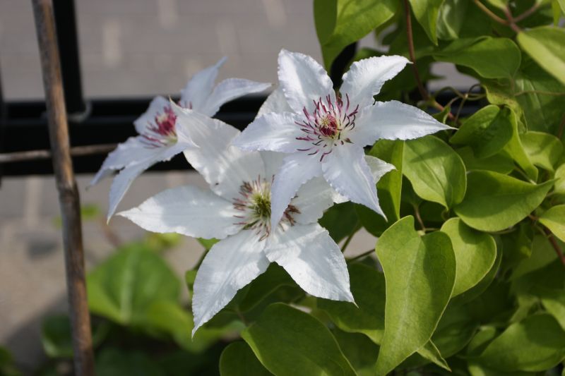 Morfoloģija. Lapas trīsdaivaini saliktas. Ziedi balti, 14 cm diametrā, ar 6 eliptiskām lapām. Putekšņlapas purpursarkanas. Zied jūlijā - rudenī. Auglis mazs, ar garu, spalvai līdzīgu galu.