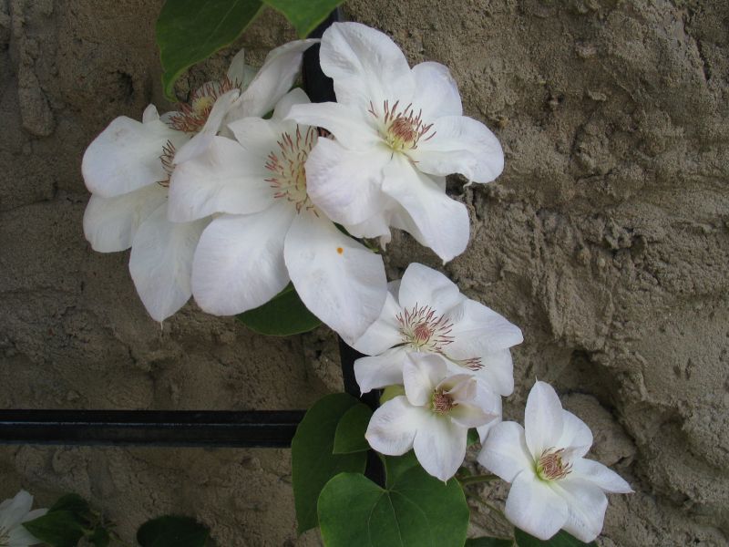 Morfoloģija. Lapas trīsdaivaini saliktas. Ziedi balti, 18 cm diametrā, ar 6 platām, eliptiskām lapām. Putekšņlapas brūnas. Zied jūlijā – rudenī. Auglis mazs, ar garu, spalvai līdzīgu galu.