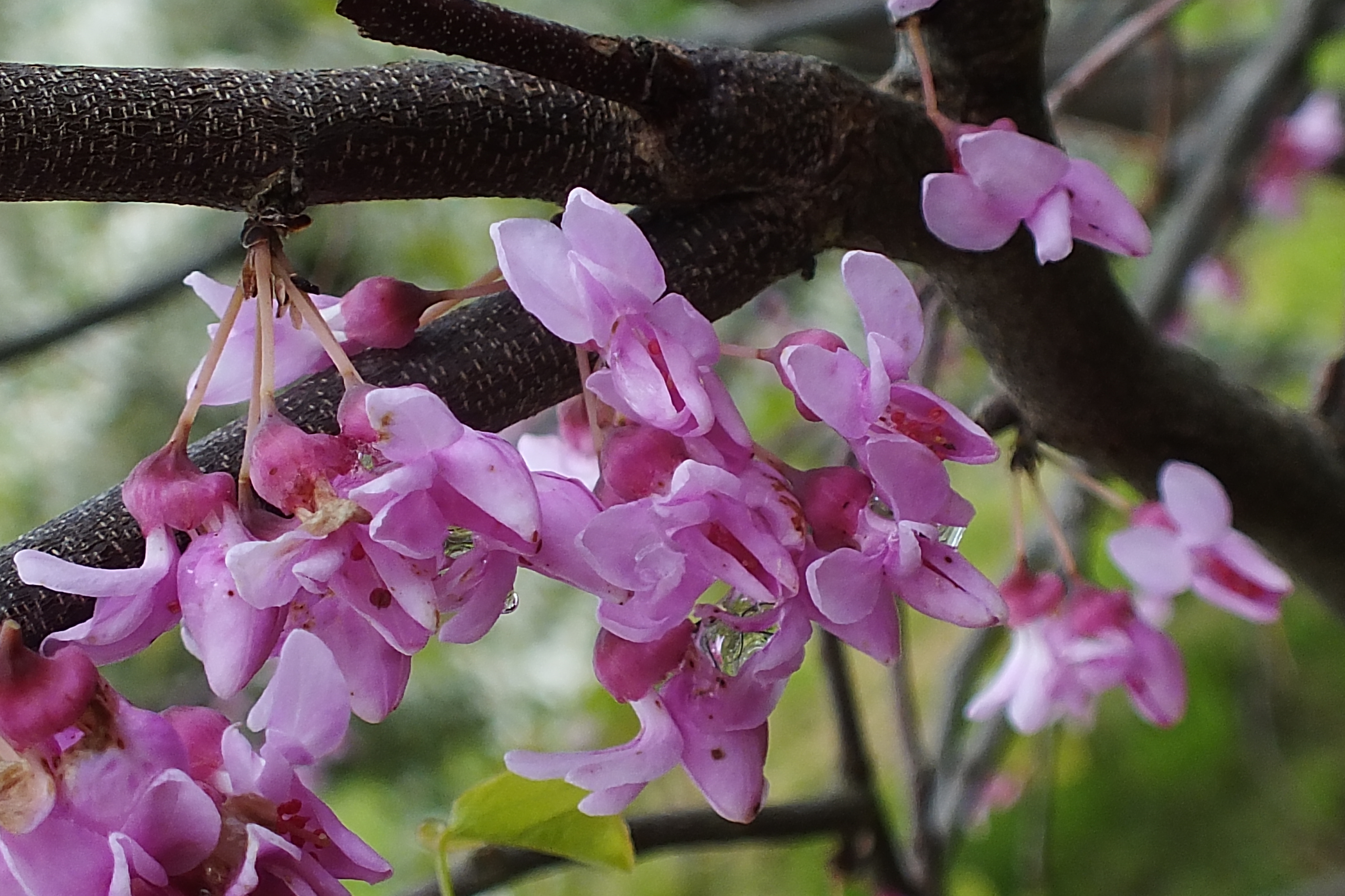 Morfoloģija. Vasarzaļš, neliels 6-10 m augsts un 8-10 m plats koks ar plakanu vai noapaļotu vainagu un nokareniem zariem. Miza tumša, gluda, vecākiem kokiem zvīņaina un rievaina. Zari gandrīz melni, ar gaišām lenticelēm. Lapas veselas, sirdsveidīgas, ar gludām malām, 7-12 cm garas un platas, apakšpusē var būt viegli matainas. Ziedi koši purpursarkani. Dzimtenē zied no pavasara līdz vasaras vidum. Pākstis plakanas, sausas, brūnas, 5-10 cm garas, ziemā saglabājas.