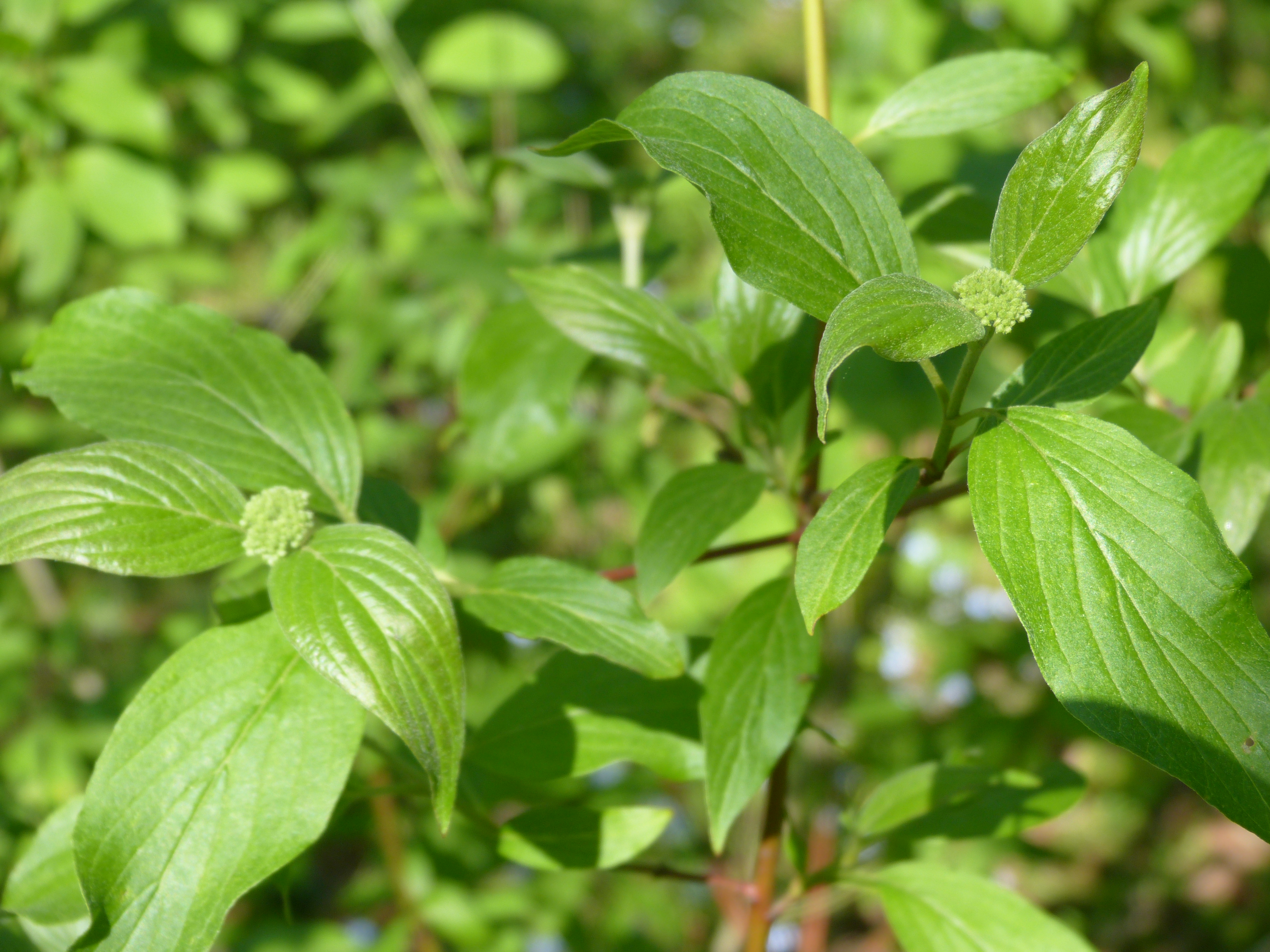 Morfoloģija. Vasarzaļš, līdz 3 m augsts krūms ar stāviem zariem. Jaunie dzinumi mataini, nobriedušie kaili, purpursarkani. Lapas eliptiski olveidīgas vai eliptiskas, 5-12 cm garas, ar nosmailotu galotni un noapaļotu pamatu, jaunās abpusēji ar īsiem matiņiem, nobriedušās gandrīz kailas, virspusē tumši zaļas, apakšpusē ar piespiestiem brūniem matiņiem uz plātnes virsmas. Ziedkopas vairogveida, plakanas, blīvas, 4-6 cm platas, ar pūkainām asīm. Vainaglapas dzeltenbaltas, iegareni olveidīgas, 4-5 mm garas. Kaulenis gandrīz apaļš, gaiši zils, 6-8 mm plats. Zied maijā, jūnijā, augļi nogatavojas augustā, septembrī.