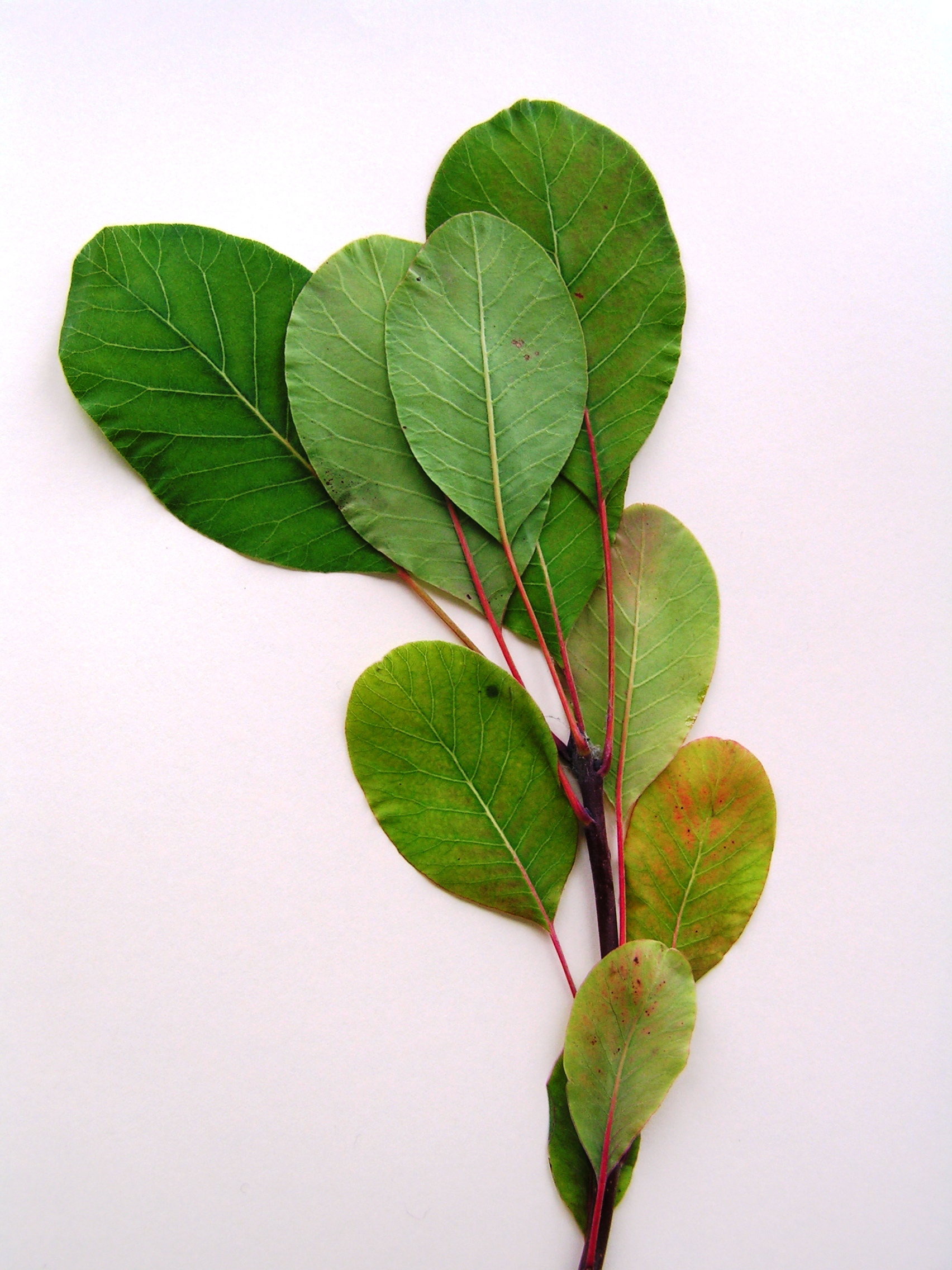 Morfoloģija. Vasarzaļš, 6-10 m augsts koks vai krūms. Mizas iekšējā kārta balta, noplēsta gaisā kļūst oranža. Lapas veselas, ādainas, plati eliptiskas vai otrādi olveidīgas, pie pamata ķīļveidīgi sašaurinātas, 6-12 cm garas, jaunās ar purpursarkaniem plankumiem, vasarā zaļas, bet rudenī oranžas. Lapas kātiņš sarkans. Ziedi sīki, dzeltenbalti līdz zaļi, skrajās ziedkopās.