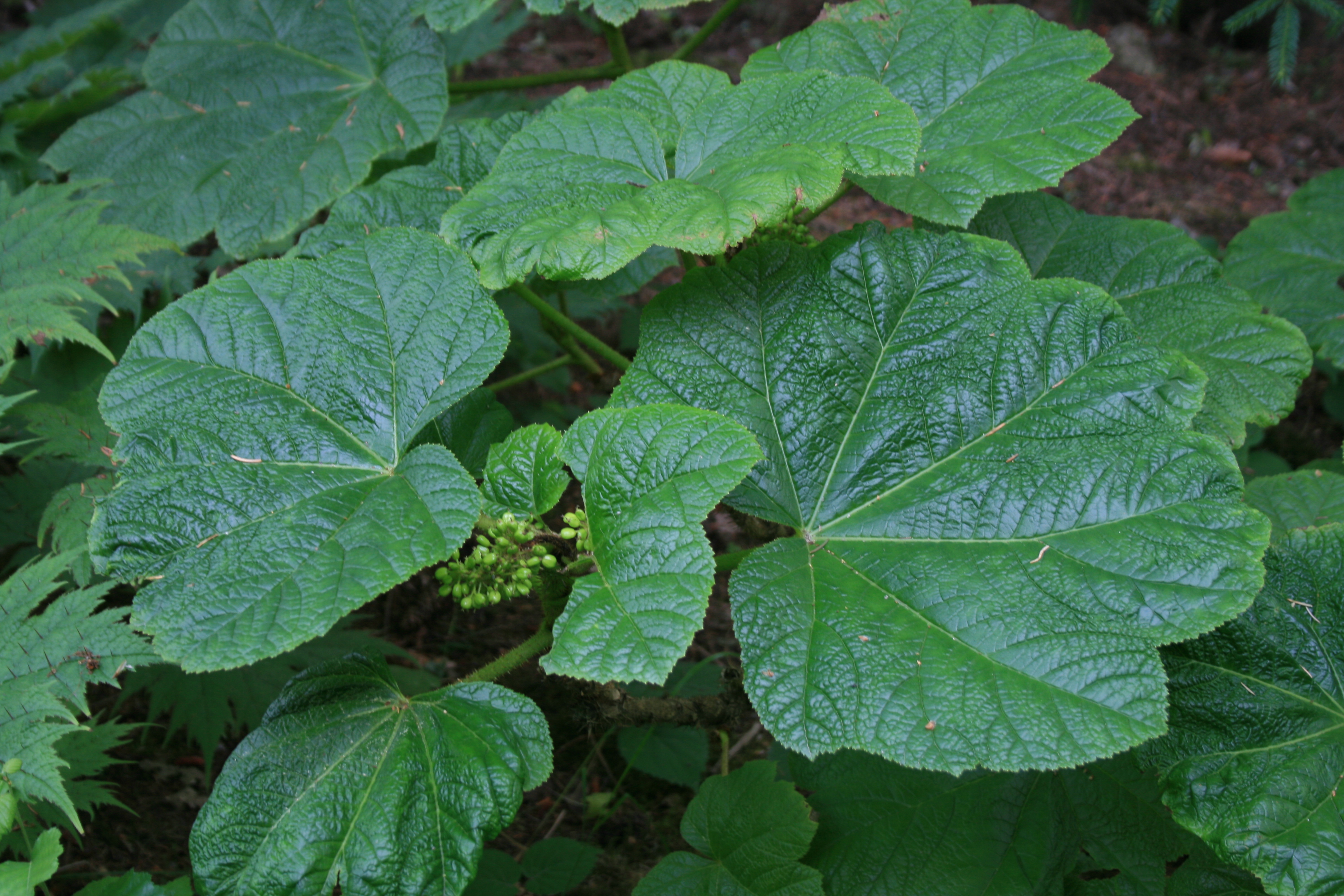 Morfoloģija. Vasarzaļš, līdz 1 m augsts krūms ar stāviem stumbriem. Izplešas ar sakneņiem.Miza pelēka, blīvi klāta ar trausliem, adatveidīgiem dzeloņiem. Lapas ieapaļas līdz plati olveidīgas, ar sirdsveidīgu pamatu, 10-30 cm platas, virspusē kailas vai ar retiem dzeloņiem, apakšpusē ar dzeloņiem uz dzīslām, sekli 5-7 daivainas. Ziedi pieclocekļu, zaļganbalti, apkopoti čemuros, kas savukārt apvienoti ķekarveidīgā ziedkopā, kas blīvi klāta ar dziedzerīšiem un rudiem matiņiem. Augļi sarkanīgi dzelteni, 7-12 mm gari, ar 2 kauliņiem.