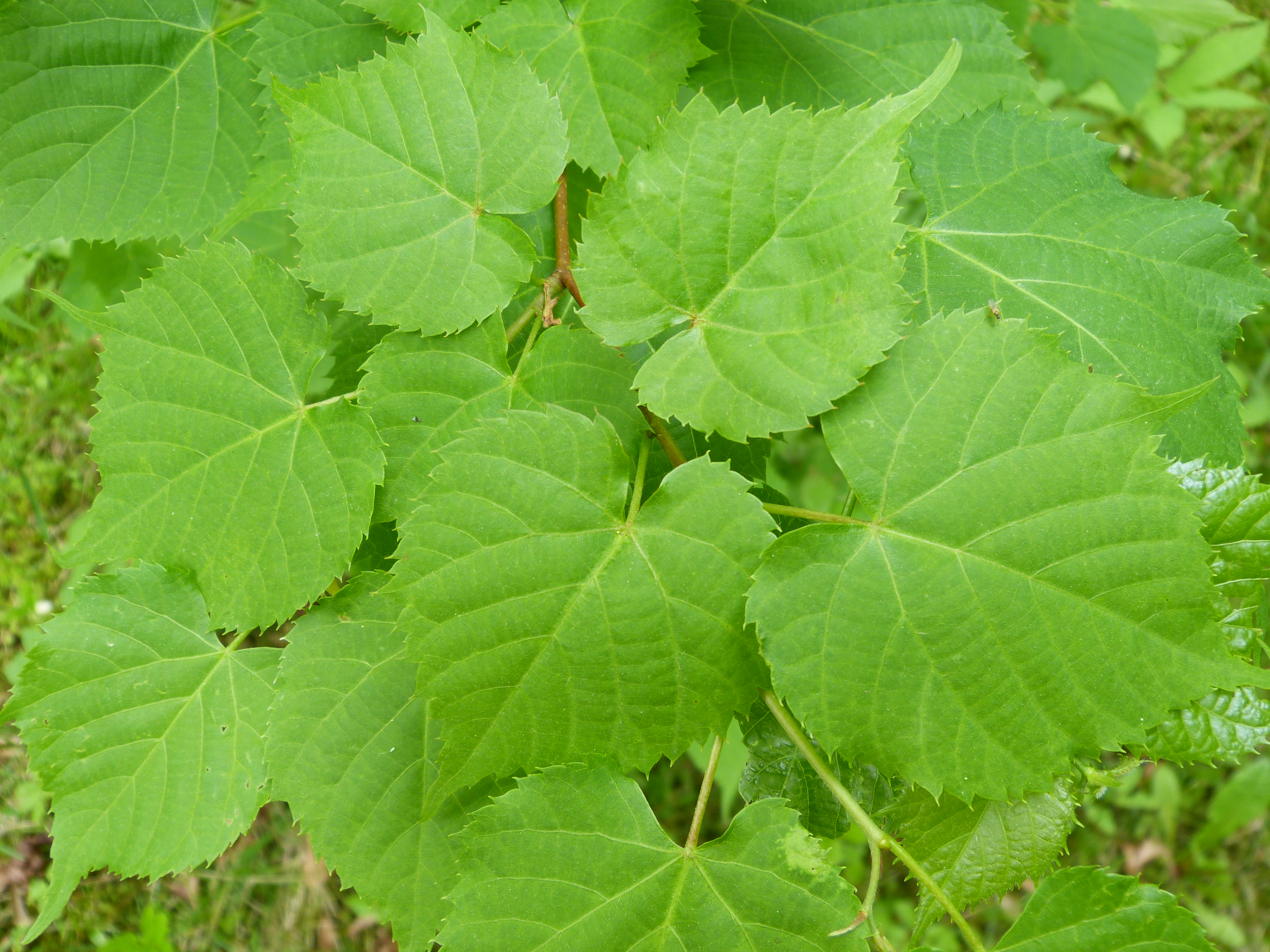 Morfoloģija. Vasarzaļš, 3-10 m augsts koks ar nokareniem zariem. Miza pelnu pelēka. Zari sākumā purpursarkani, vēlāk dzelteni, kaili. Pumpuri kaili. Lapas plati sirdsveidīgas, 5-7 cm garas un platas, 3-5 daivainas, galotnē strauji pāriet garā smailē, nevienmērīgi rupji zobainas, virspusē tumši zaļas, kailas, apakšpusē ar rudu matiņu kušķiem dzīslu stūros. Ziedkopas ar 10-20 ziediem. Kauslapas lancetiskas, ar smailu galotni, ieliektas, 5 mm garas un 1mm platas. Vainaglapas lāpstveida, garākas par kauslapām, 6-7 mm garas. Augļi gandrīz apaļi vai olveidīgi, 5-8 mm gari, pieguloši pelēcīgi dzelteni tūbaini. Zied jūlijā, augustā, augļi nobriest septembrī, oktobrī.