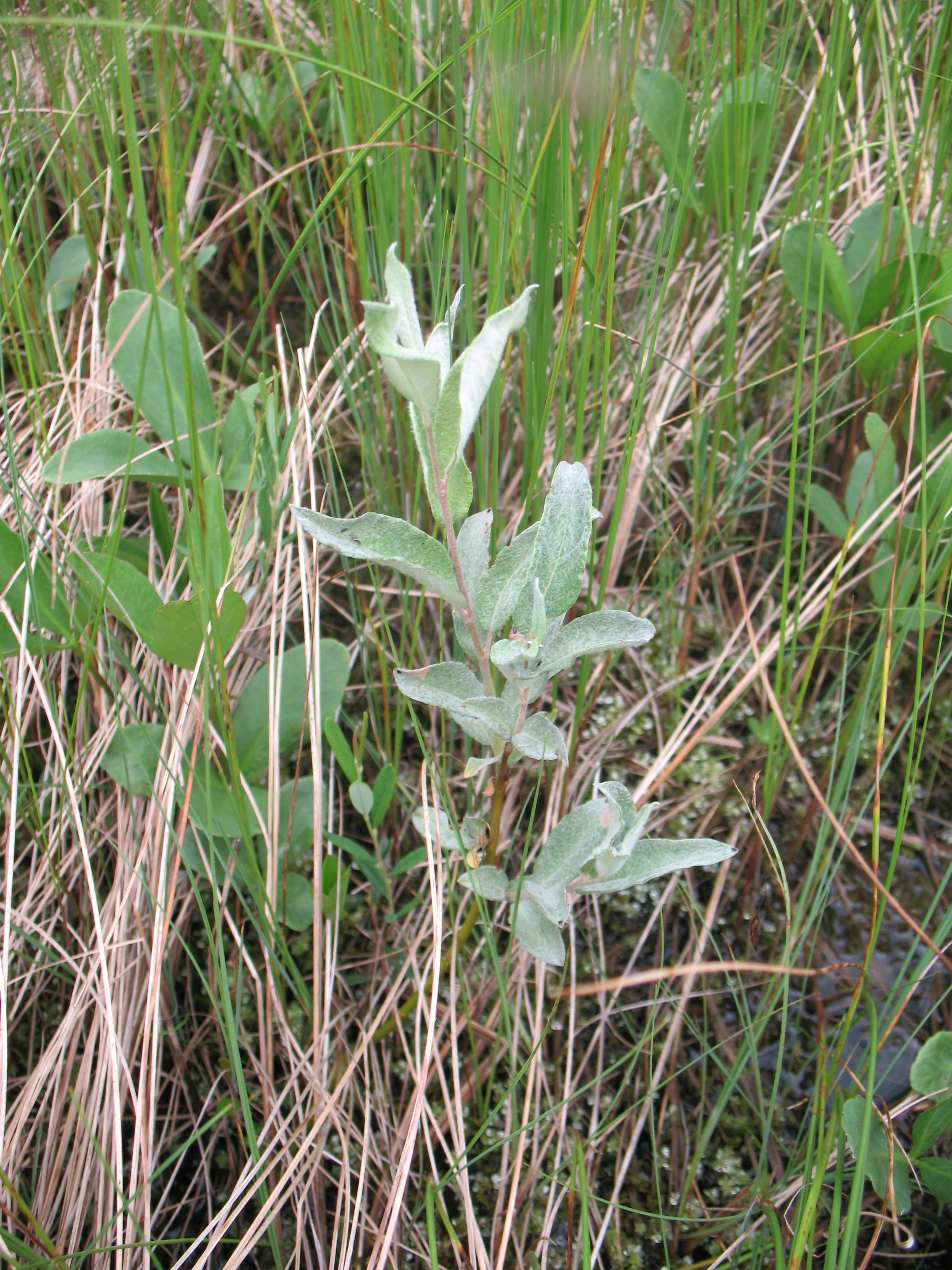 Morfoloģija. Vasarzaļš, 1-1,5 m augsts, apaļš vai olveida krūms. Zari tumši sarkani vai brūni. Jaunie dzinumi tūbaini. Lapas 5-8 cm garas un 2-3 cm platas, iegareni olveidīgas vai lancetiskas, ar noapaļotu vai plati ķīļveidīgu pamatu, malas ar zobiņiem vai veselas, ieritinātas, virspusē blāvi zaļas, viegli rievainas, apakšpusē balti tūbainas. Spurdzes gandrīz sēdošas, 2-4 cm garas, ar gariem, baltiem matiņiem. Zied maijā, jūnijā.
