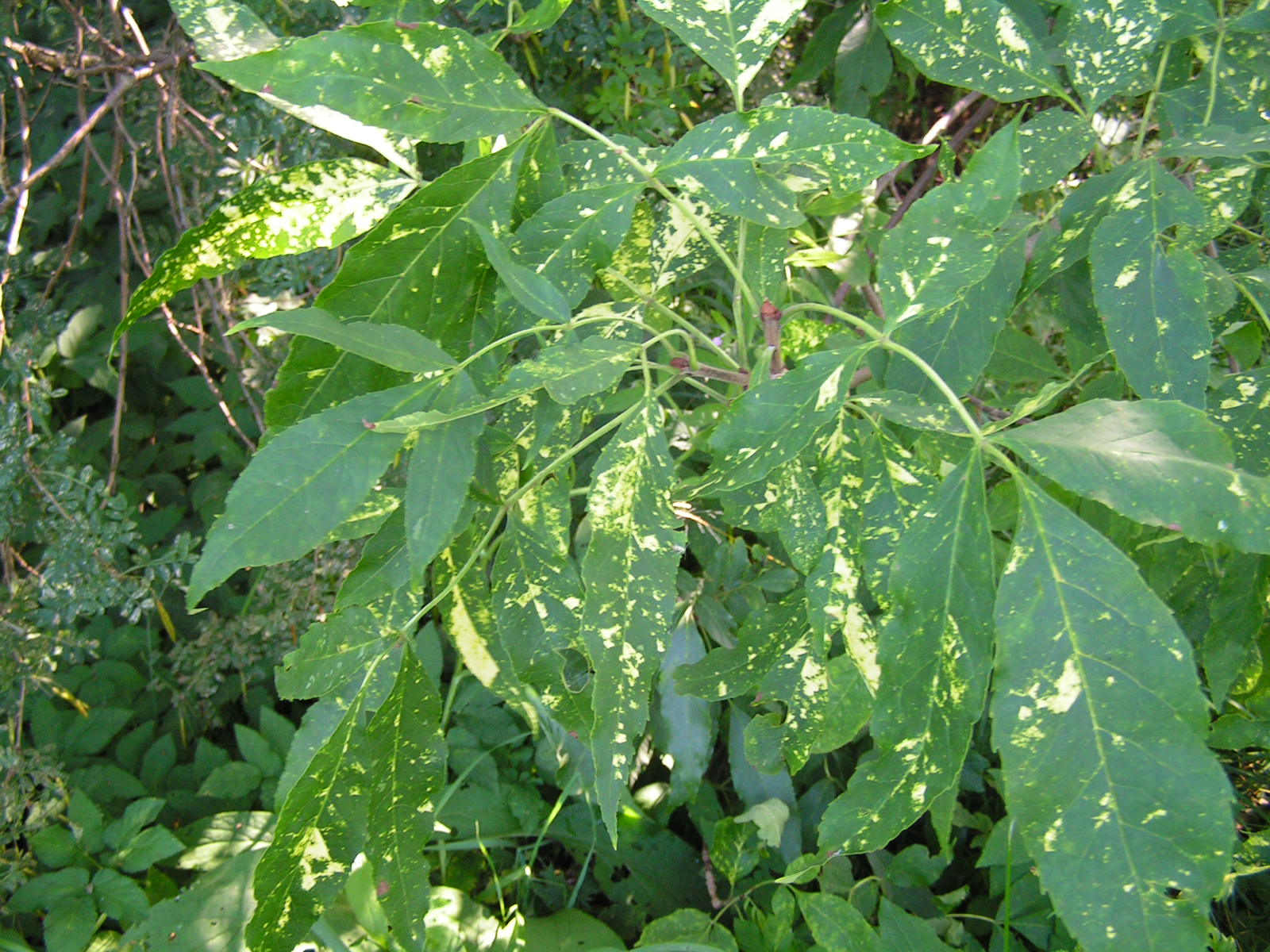 Morfoloģija. Vasarzaļš, līdz 20 m augsts koks ar neregulāru vainagu un brūni tūbainiem dzinumiem. Jaunās lapas gaiši zaļas ar dažāda lieluma dzelteniem plankumiem vai dažkārt gandrīz dzeltenas. Vasaras otrajā pusē paliek tumšākas.