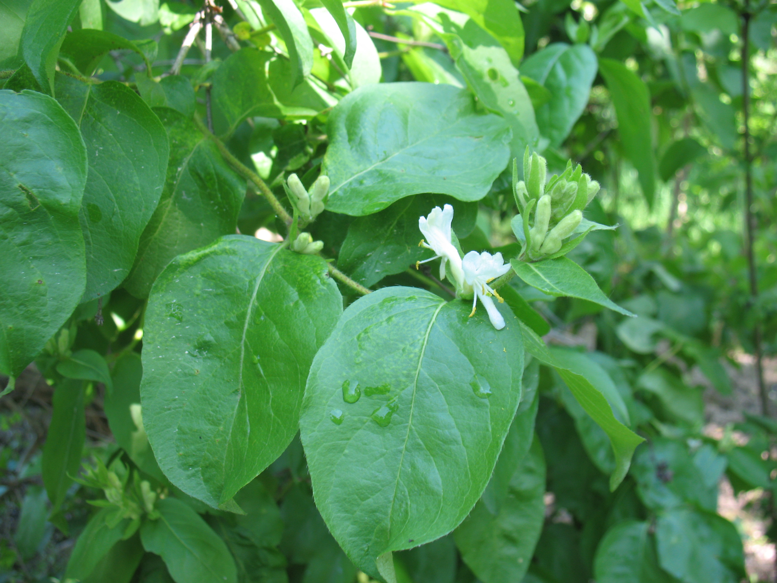 Morfoloģija. Vasarzaļš, 2-4 m augsts, stāvs krūms. Dzinumi ar pagariem, retiem sariņiem. Lapas biezas, ovālas līdz iegareni ovālas, 5-10 cm garas, ar nošķeltu vai noapaļotu pamatu, virspusē ar retiem sariņiem, tumši zaļas, spīdīgas, apakšpusē ar sariņiem uz dzīslām, ar 3-10 mm garu kātu. Pieziedlapas olveidīgas līdz iegarenas, ar smailu galotni, 1,5 cm garas. Ziedi bāli krēmkrāsas līdz dzelteni, smaržīgi, it īpaši vakarā un naktī. Vainags ārpusē ar atstāvošiem sariņiem. Augļi koši sarkani, pie pamata saauguši kopā pa 2. Zied maijā, augļi nogatavojas septembrī.