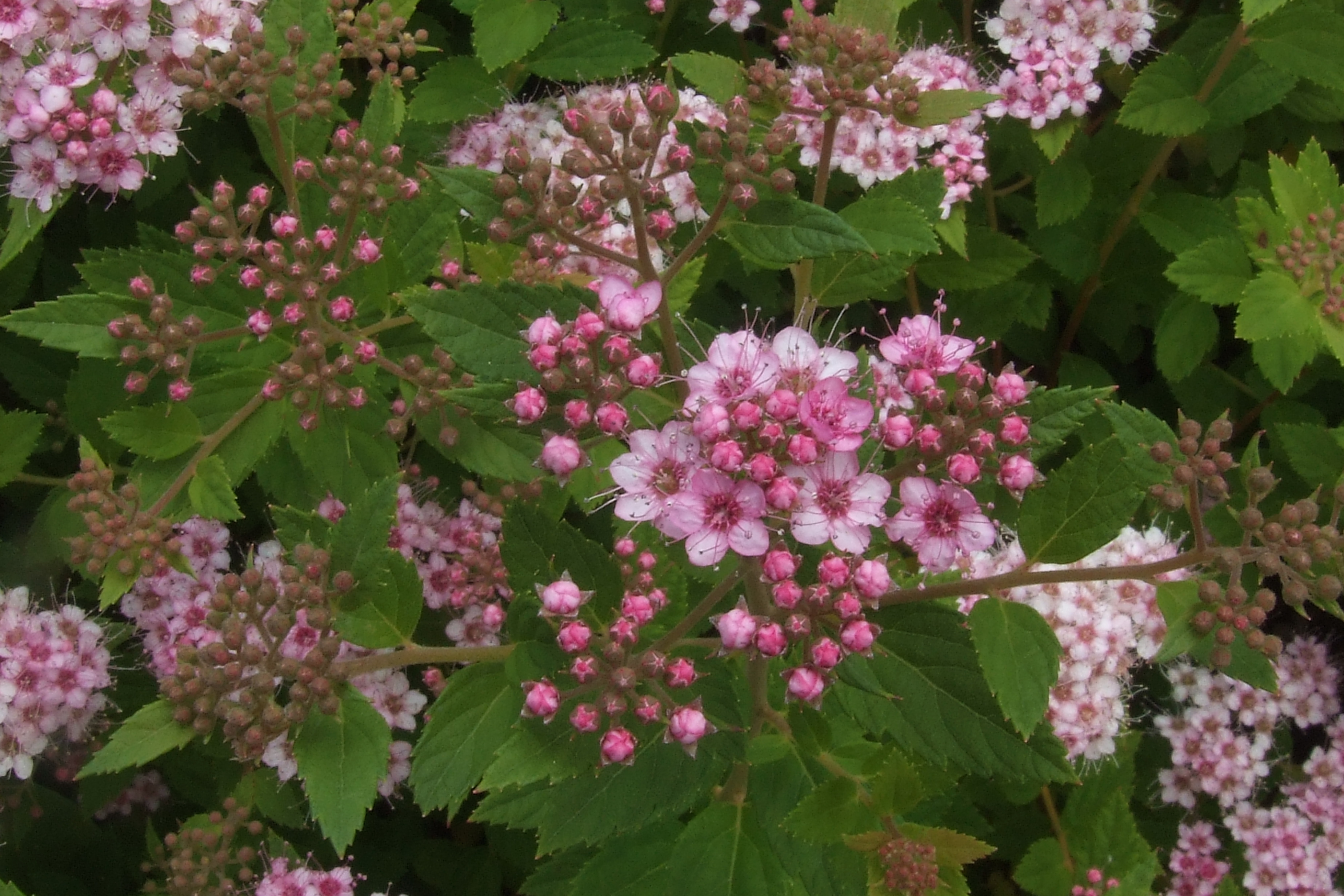 Morfoloģija. Zems, 20-30 cm augsts, kompakts krūms. Lapas plati olveida, 1-2 cm garas, tumši zaļas. Rudenī krāsojas sarkanos un oranžos toņos. Ziedi violeti sārti, sakārtoti vairogveida ziedkopās. Zied VII-VIII.