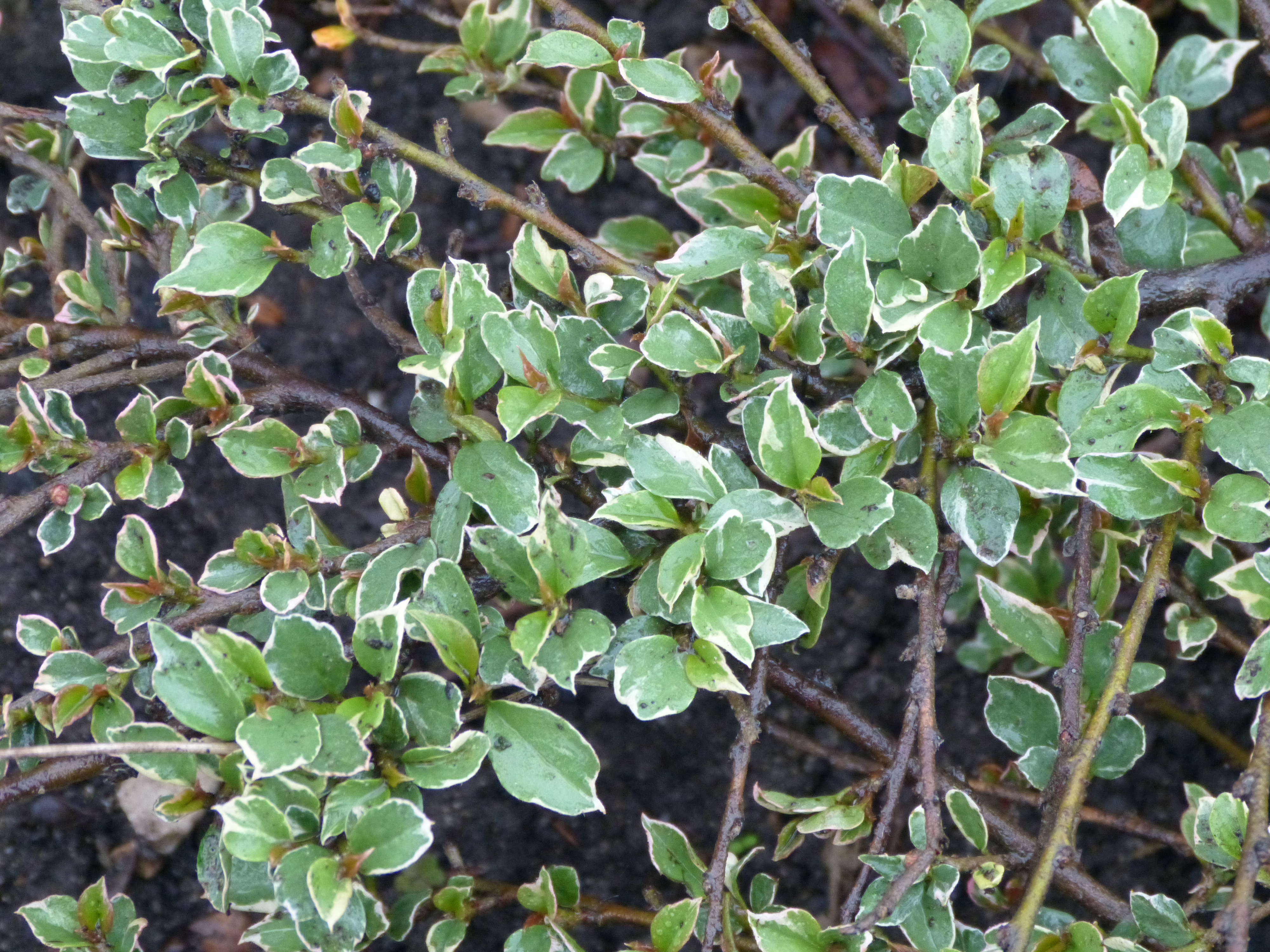 Morfoloģija. Pusmūžzaļš vai vasarzaļš, līdz 40 cm augsts un ap1 m plats, blīvs krūms. Zarojums atgādina zivs skeletu. Lapas pamīšus, ieapaļas līdz plati eliptiskas, 5-12 mm garas, ar smailiem galiem, spīdīgas, tumši zaļas un ar baltu apmali, kas rudenī sārtojas. Ziedi pa 1-2, ar īsiem kātiņiem; vainaglapas stāvas, sarkanīgas vai baltas. Augļi gaiši sarkani, ieapaļi, 5 mm gari, parasti ar 3 kauliņiem.