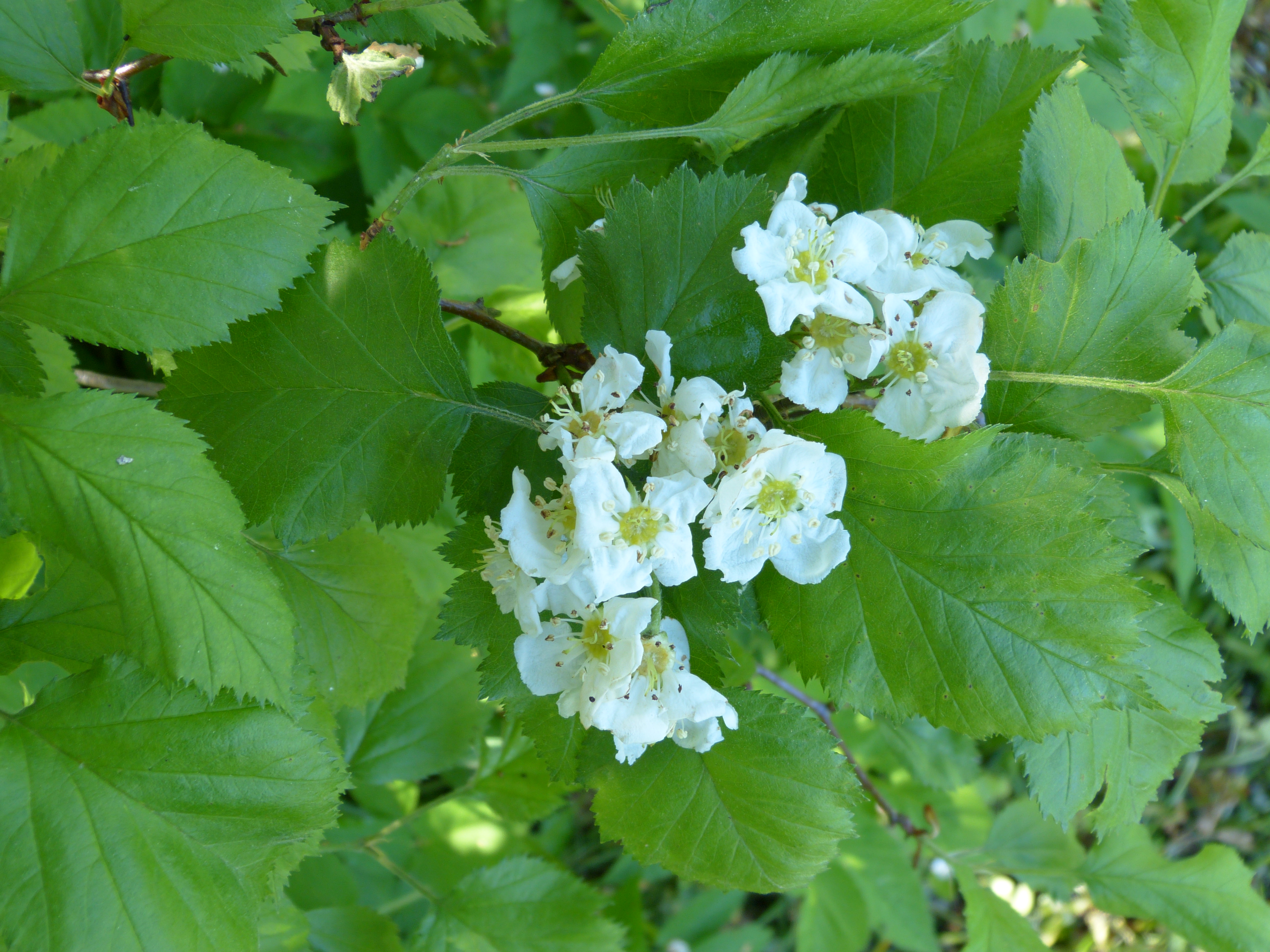 Morfoloģija. Vasarzaļš, 4-6 m augsts kociņš ar blīvu vainagu. Nobriedušie dzinumi brūni, spīdīgi, ar lielām, baltām lenticelēm. Ērkšķu daudz, tie taisni vai viegli liekti, 3-7 cm gari. Lapas plati olveida, nedaudz platākas kā garas, ar smailu galotni, jaunas matainas, vēlāk matiņi tikai lapas apakšpusē uz dzīslām. Ziedi saliktos vairogos. Ziedkopa ar pelēcīgu tūbu. Kauslapas šauras, ar asu galotni un ar dziedzerainiem zobiņiem. Augļi koši karmīnsarkani ar bāliem punktiņiem, gandrīz apaļi, 1,2-1,7 cm gari un plati, ar matiņiem augšdaļā. Kauslapas parasti atliektas. Kauliņi 4-5.