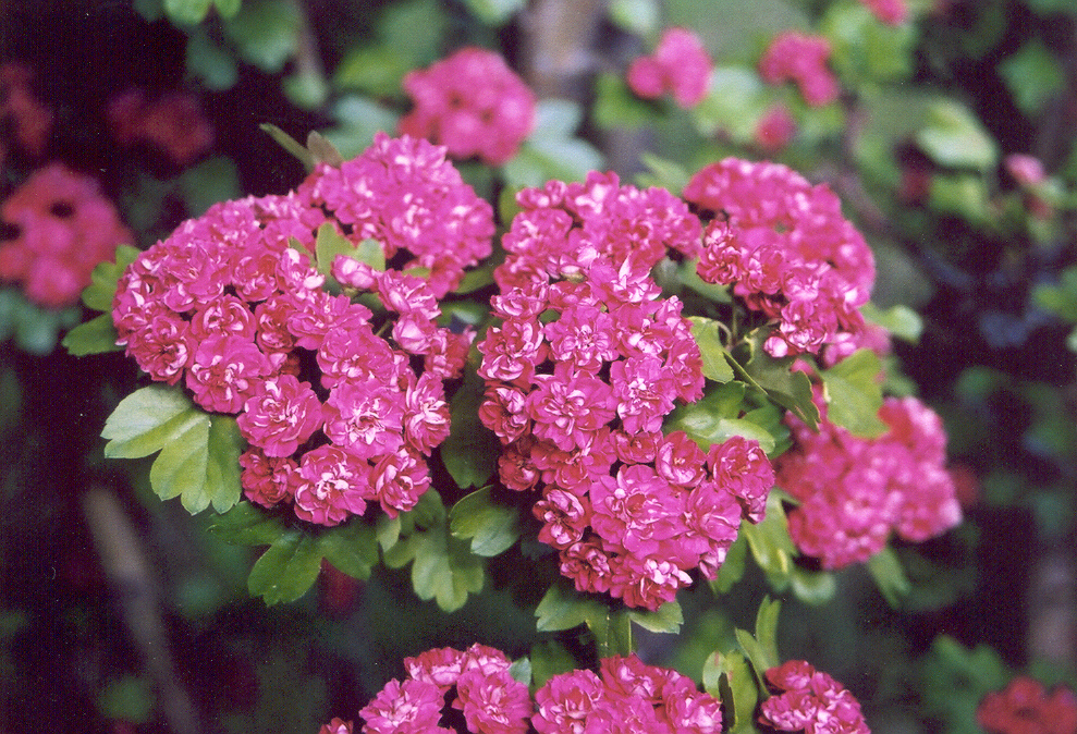 Morfoloģija. Vasarzaļš, līdz 10 m augsts koks. Ziedi pildīti, gaiši karmīnsarkani.