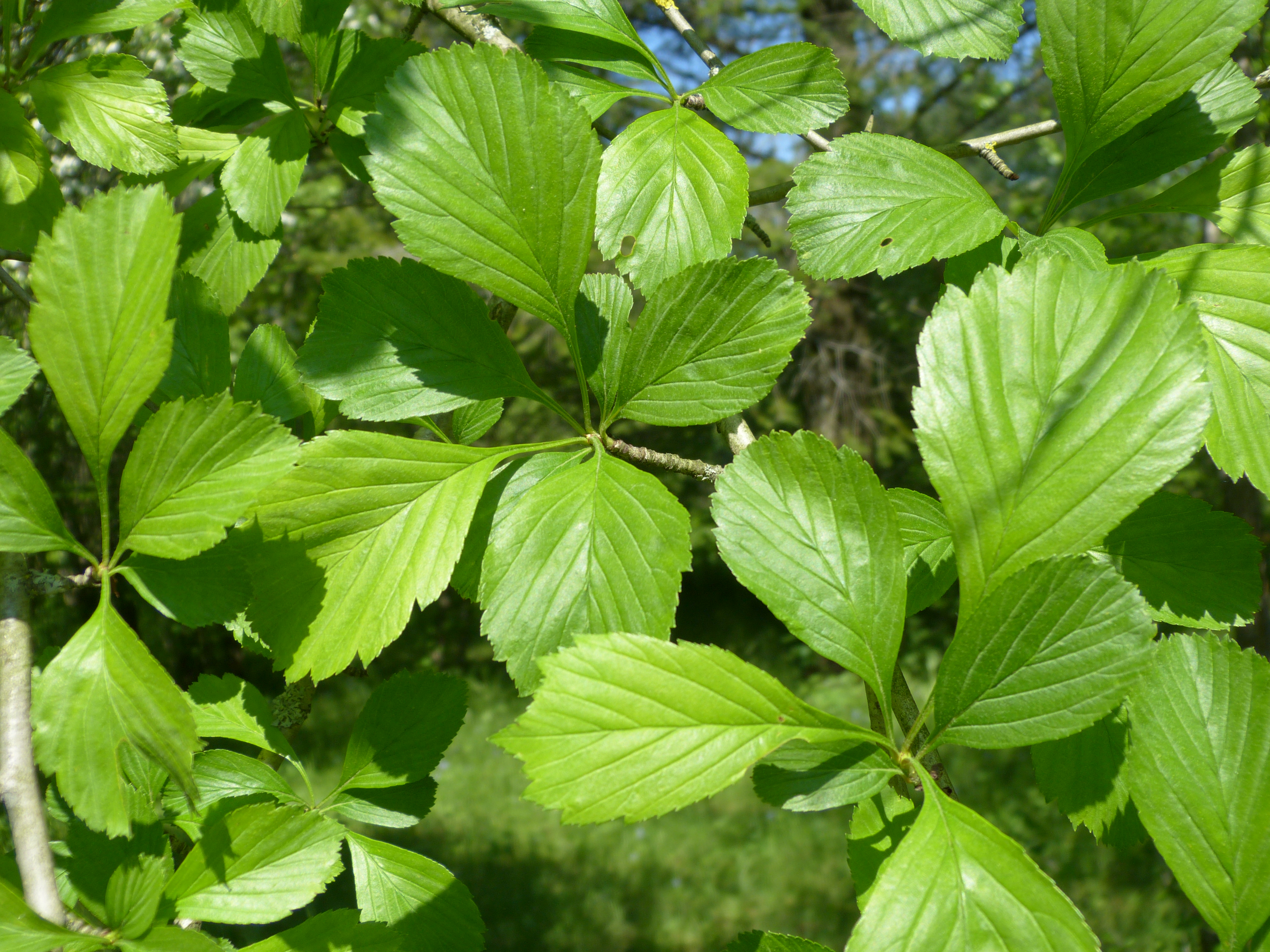 Morfoloģija. Vasarzaļš, 6-9 m augsts koks ar noapaļotu vainagu. Jaunie dzinumi zaļgani, olīvbrūni. Ērkšķu maz, tie 5-7 cm gari, pelēki līdz brūni. Lapas otrādi olveida, 3-10 cm garas, 2-6 cm platas, veselas vai galotnes tuvumā viegli daivainas, ar ķīļveida pamatu, nobriedušās biezas cietas ādainas, virspusē tumši pelēcīgi zaļas, ar dziļi iegrimušām dzīslām. Ziedkopas matainas, daudzziedu salikti vairogi. Ziedgultne un kauslapas matainas. Vainags balts, 12-20 mm plats. Augļi bāli brūngansarkani vai oranžsarkani, ar gaišiem punktiem, gandrīz apaļi, 1,2-2,1 cm gari, pie pamata ar baltiem matiņiem. Mīkstums dzeltens, miltains, skābens. Kauliņi 2-5. Zied jūnijā, augļi nogatavojas septembrī un ātri nobirst.