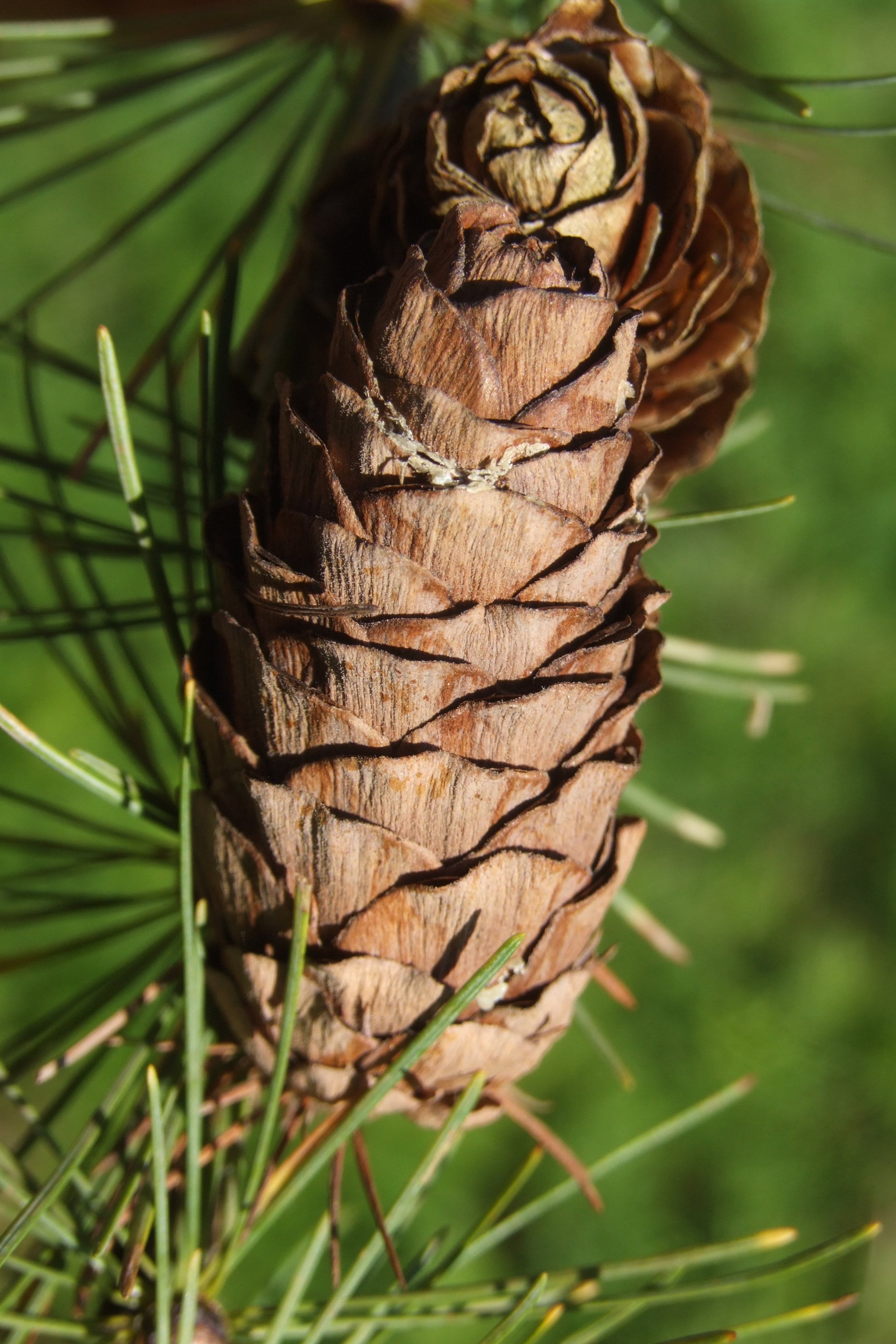 Morfoloģija. Vasarzaļi skujkoki, dzimtenē 30-50 m augsti (augstākā Ziemeļamerikas lapegle). Vainags šauri piramidāls. Zari īsi. Miza jauniem kokiem zvīņaina, pelēkbrūna. Jaunie dzinumi oranžbrūni, sākumā nedaudz matoti, vēlāk kaili. Pumpuri brūni, kaili. Skujas bāli zaļas, uz īsvasām pušķos pa 14-40. Plaukst maija sākumā, dzeltē un nobirst oktobra otrā pusē. Zied maijā. Čiekuri iegareni olveida, 2,5-3,5 cm gari. Čiekurzvīņas 7-12 rindās, ieapaļas vai nošķeltas. Segzvīņas garākas par čiekurzvīņām, redzamas čiekura ārpusē. Nogatavojas septembrī. Gatavie čiekuri ātri atveras un drīz nobirst.