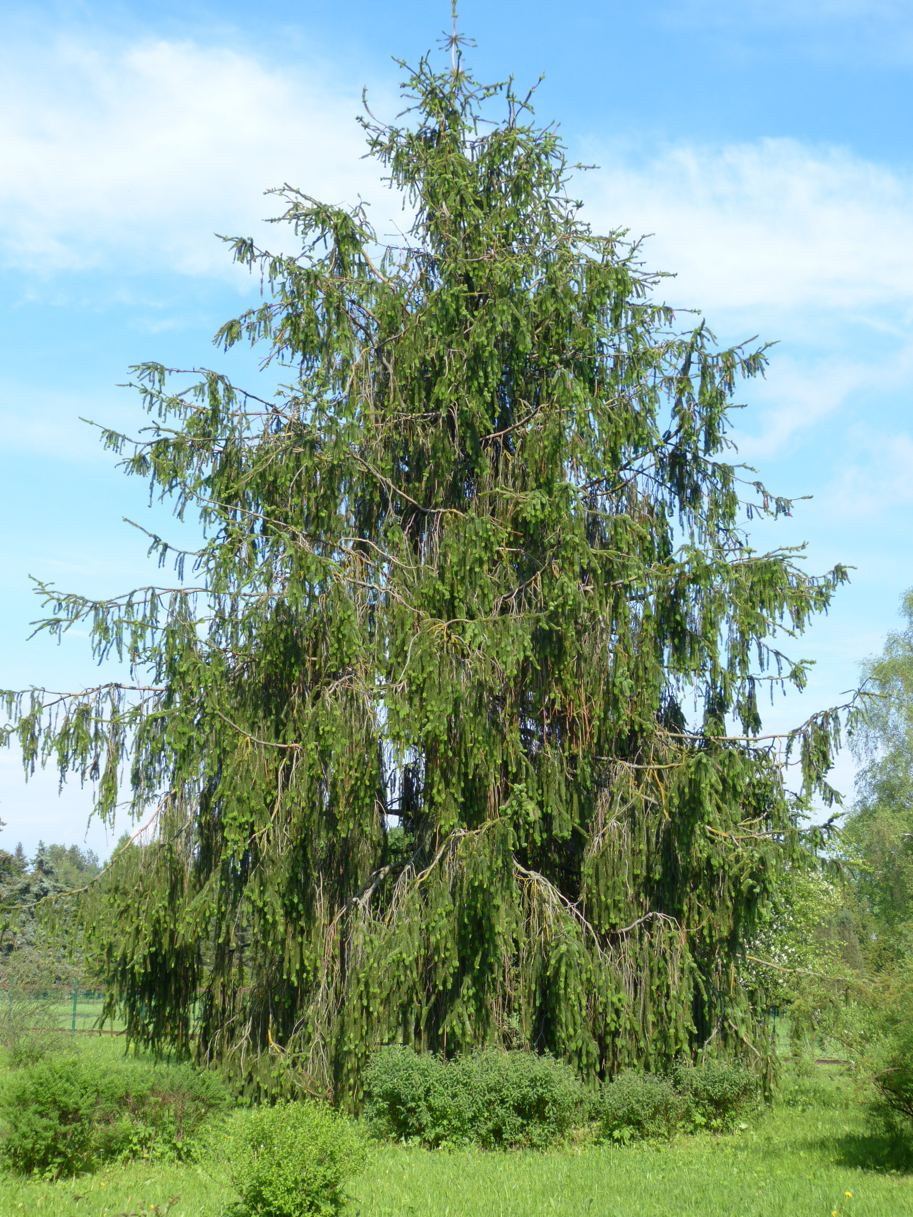 Morfoloģija. Mūžzaļš koks, kas līdzīgi čūskeglei 'Virgata', saglabā vadošo stumbru, taču atšķiras ar vairāk sazarotiem skeletzariem. Pumpuri līdz 15 mm gari. Skujas izvietojas radiāli, 3 cm garas, tumši zaļas. Latvijā viens no lielākajiem kokiem aug Krāslavas novada Kombuļu parkā. Tā augstums 24 m.