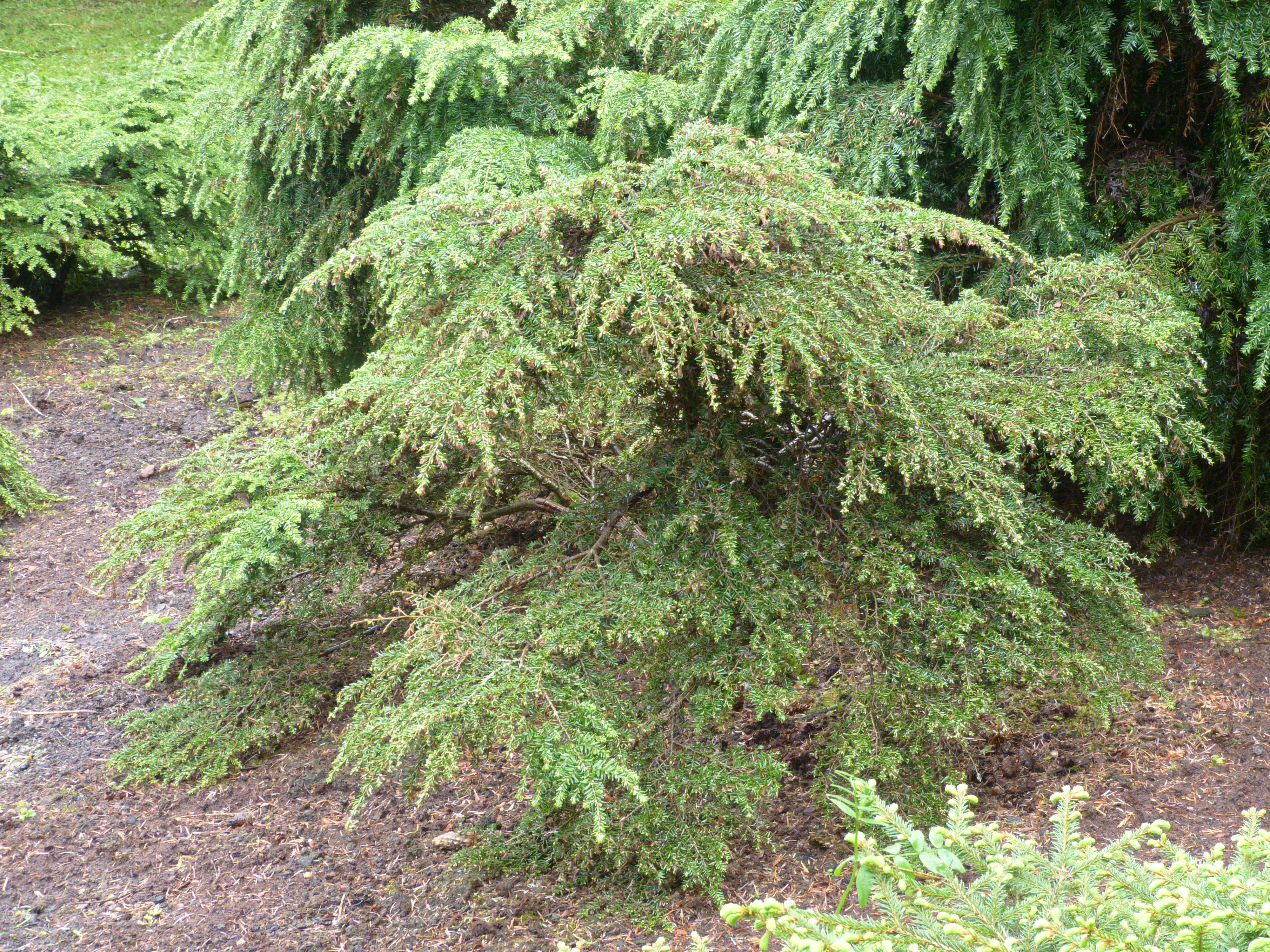 Morfoloģija. Mūžzaļa pundurforma, līdz 1 m, vai nedaudz augstāka (atkarībā no izcelsmes). Zari gari, horizontāli vai vērsti uz leju, zariņi īsi. Gada pieaugums neliels.