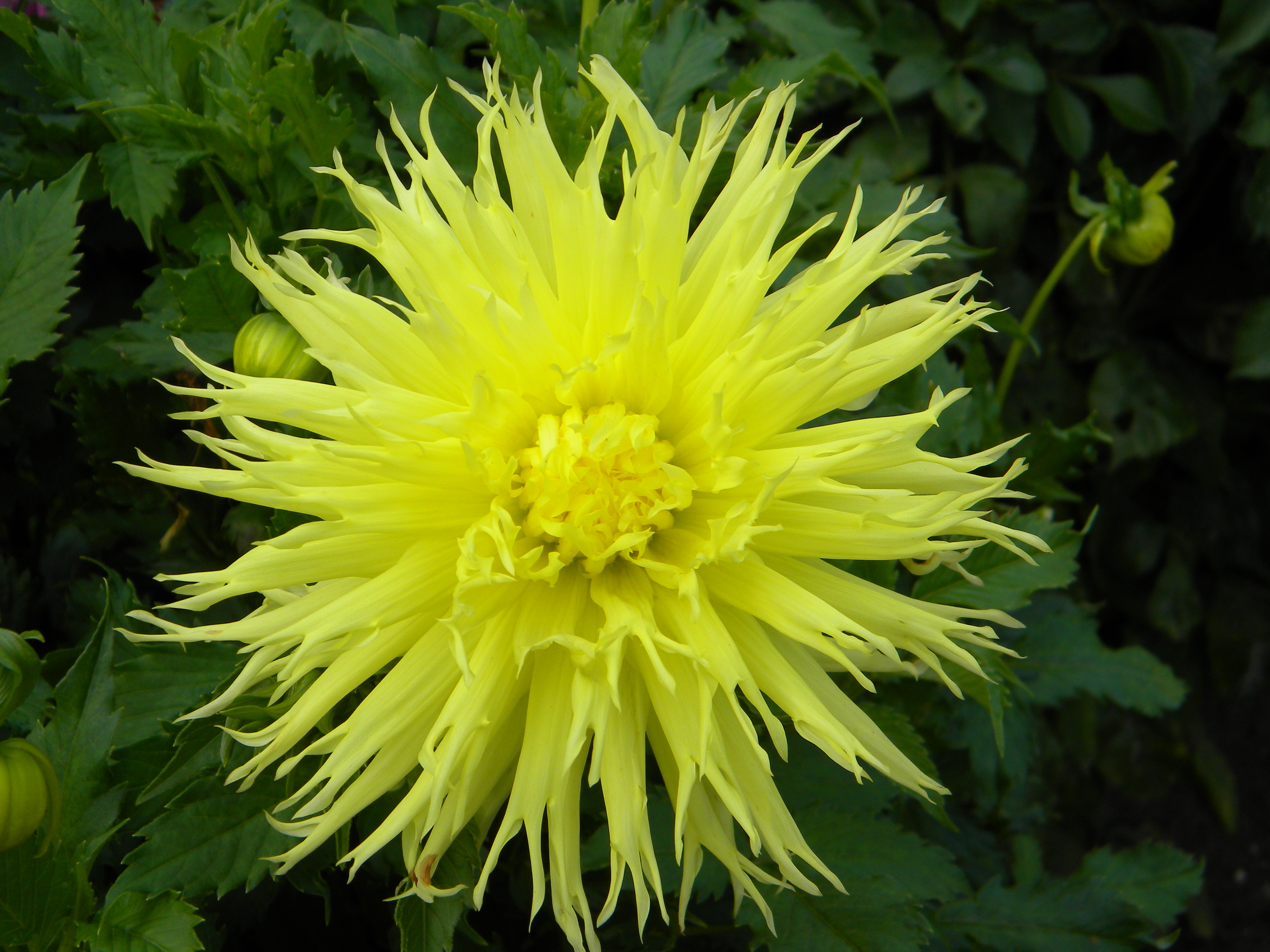 Morfoloģija. Pieder kaktusu-šķeltvainagu dāliju grupai. Daudzgadīgs lakstaugs ar uzbriedušām saknēm – gumiem. Cers izplests, līdz 65 cm diametrā, paceļas 1,3 m augstumā. Lapas koši zaļas, izkārtotas pretēji uz doba stublāja, lapojums spēcīgs. Ziedkopa koši citrondzeltenā krāsā, saulē neizbalo, ļoti izteiksmīga, tās diametrs līdz 14 cm. Noturīgie ziedneši paceļas 25-35 cm virs lapojuma.