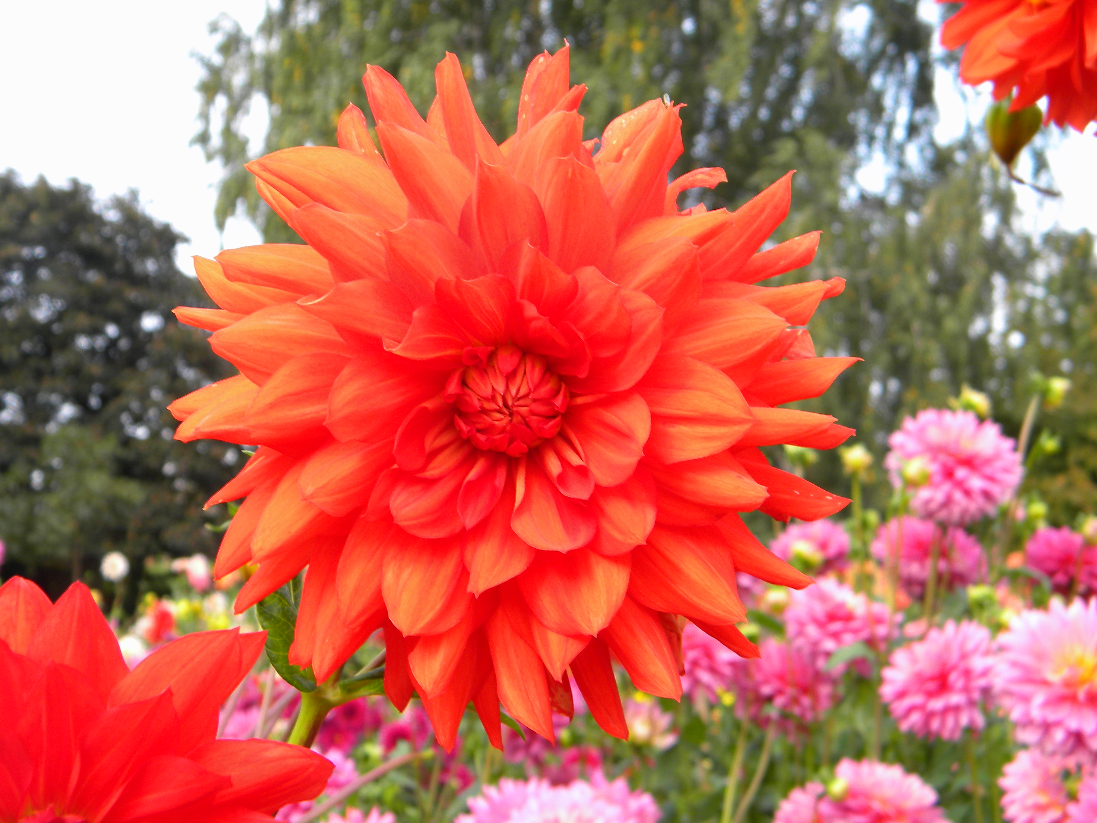 Morfoloģija. Pieder platziedu dāliju grupai. Daudzgadīgs lakstaugs ar uzbriedušām saknēm – gumiem. Cers izplests, līdz 70 cm diametrā, sasniedz 1,2-1,4 m augstumu. Lapas tumši zaļas, uz drukna stublāja ik pēc posma pretējs lapu pāris, lapojums veselīgs. Ziedkopa oranži sarkana, blīvi pildīta, tās diametrs 15 cm. Ziedneši paceļas 25-35 cm virs lapojuma, vidēji noturīgi.