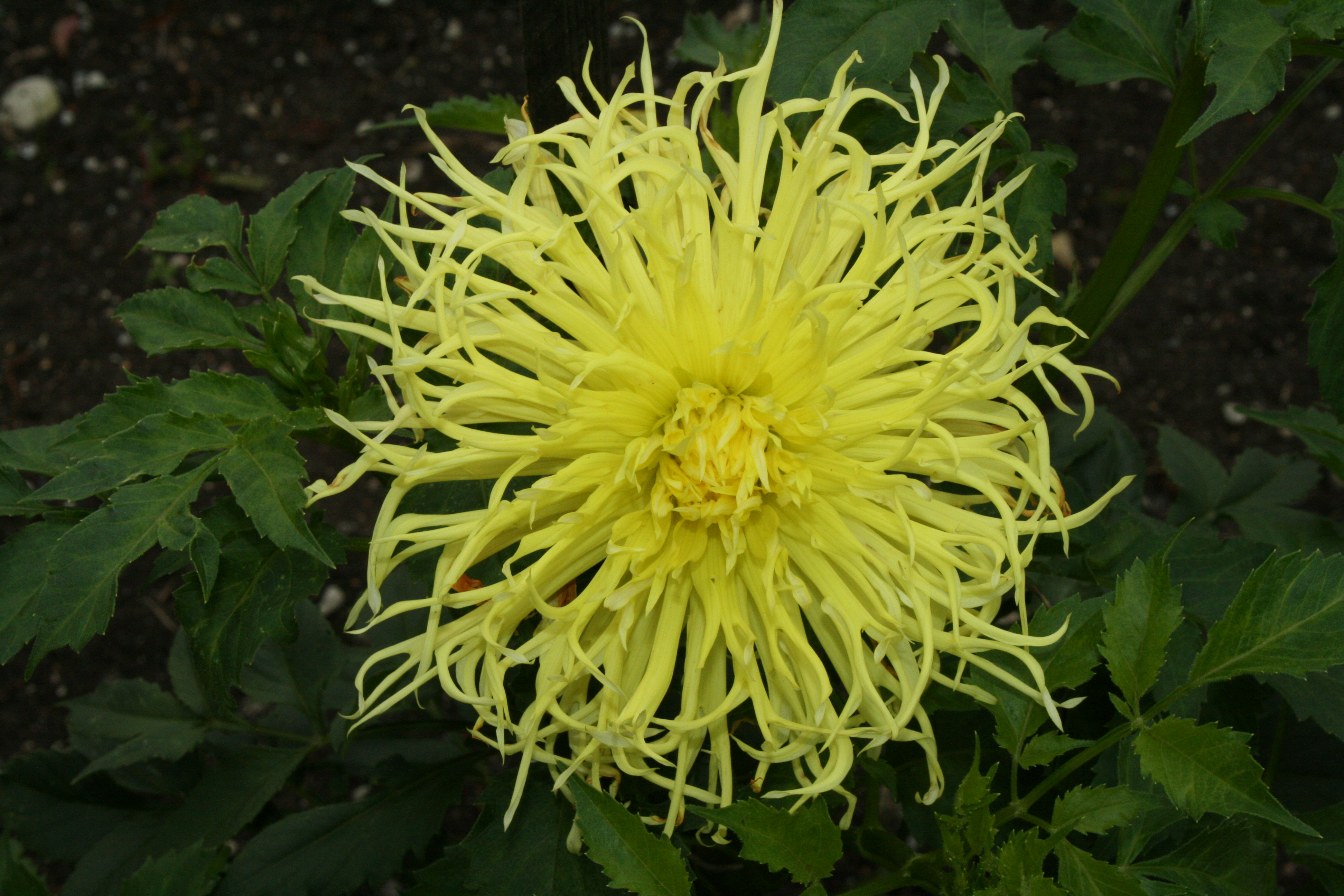 Morfoloģija. Pieder kaktusu-šķeltvainagu dāliju grupai. Daudzgadīgs lakstaugs, saknes – gumi. Cers kompakts, līdz 55-60 cm diametrā, sasniedz 1,1 m augstumu. Lapas vidēji zaļas, uz stublāja ik pēc posma pretējs lapu pāris, lapojums veselīgs. Ziedkopa spilgti citrondzeltenā krāsā, saulē neizbalo, ļoti blīvi pildīta, zieda diametrs 14 cm. Ziedneši paceļas 25-35 cm virs lapojuma, tie vidēji noturīgi.