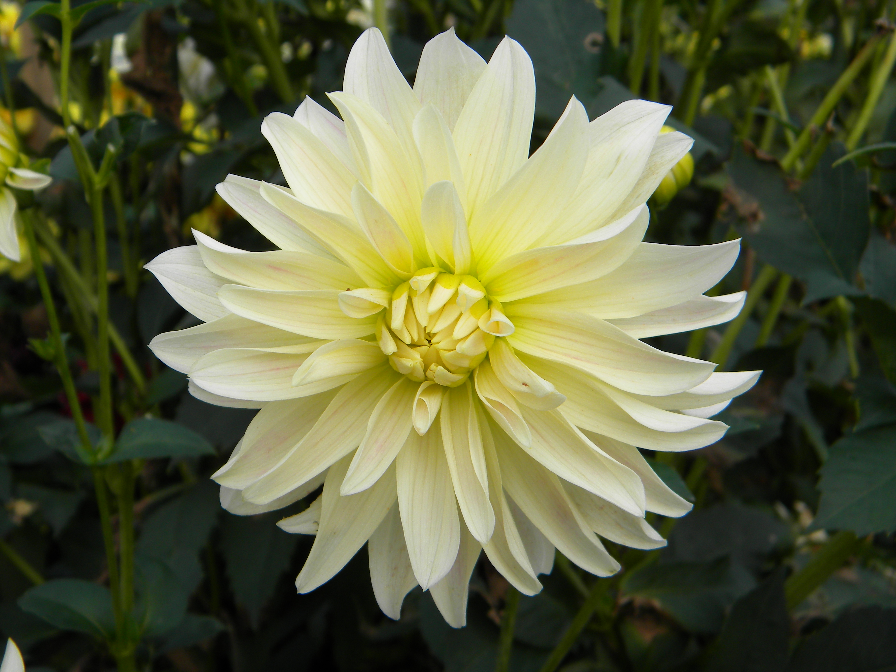 Morfoloģija. Pieder orhidejziedu dāliju grupai. Daudzgadīgs lakstaugs ar uzbriedušām saknēm – gumiem. Cers nedaudz izplests, līdz 65 cm diametrā, sasniedz 1,0-1,3 m augstumu. Lapas sulīgi zaļas, uz stublāja ik pēc posma pretējs lapu pāris, nesabiezināts lapojums. Ziedkopa zaļgani baltā krāsā ar gaiši violetu tonējumu un tikko manāmu iedzeltenu centru, izziedot nedaudz balo, tās diametrs ap 13 cm. Ziedneši paceļas 15-25 cm virs lapojuma.