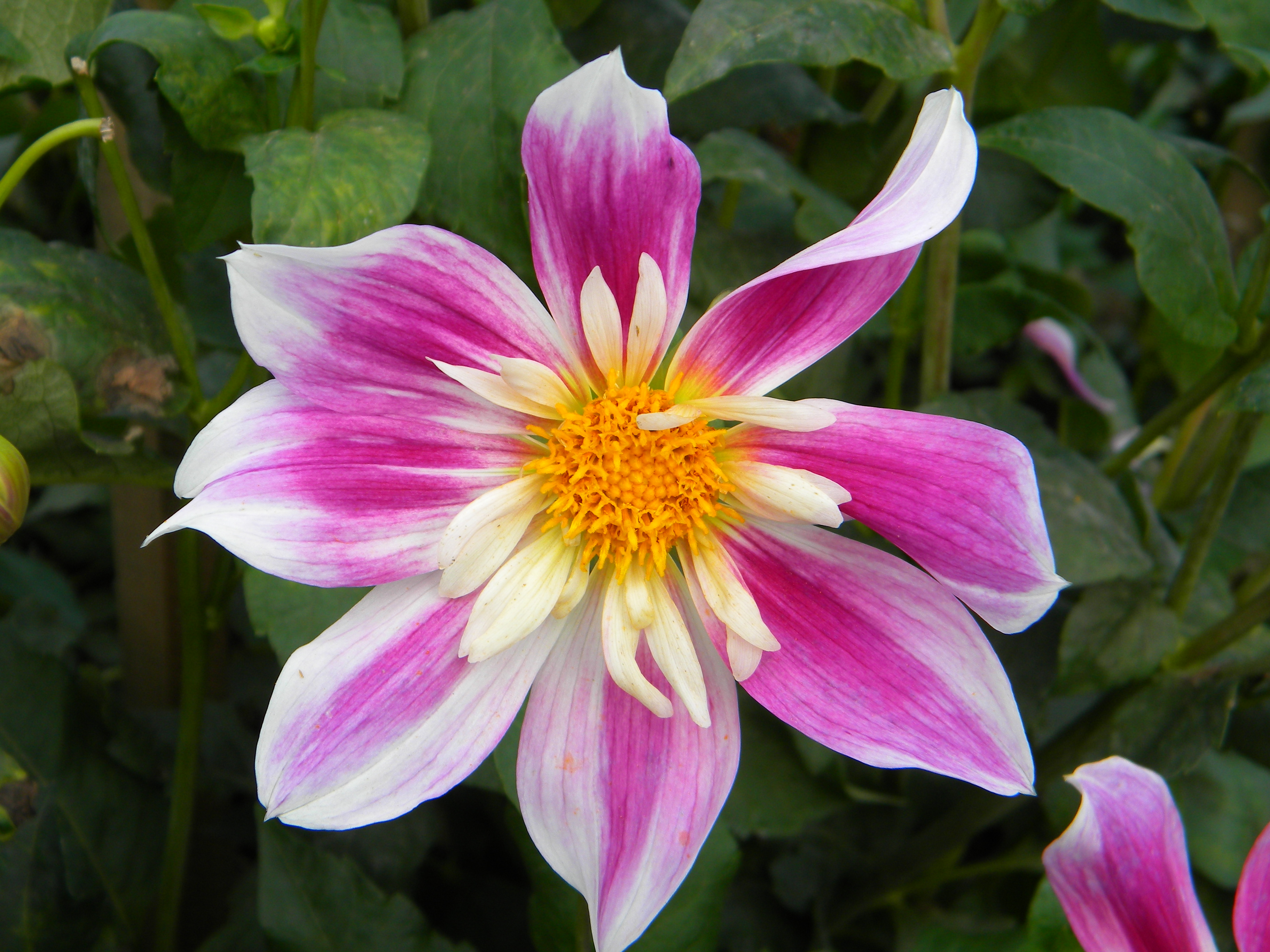 Morfoloģija. Pieder apkakļu dāliju grupai. Daudzgadīgs lakstaugs, to saknes – gumi. Cers samērā skrajš, ap 65 cm diametrā, sasniedz 1,2 m augstumu. Lapas vidēji zaļas, uz cauruļveida stublāja ik pēc posma pretējs lapu pāris, lapojums nesabiezināts. Ziedkopa violetā krāsā ar baltu apkakli, tās diametrs līdz 12 cm. Ziedneši paceļas 12-15 cm virs lapojuma, tie smalki, vidēji noturīgi.