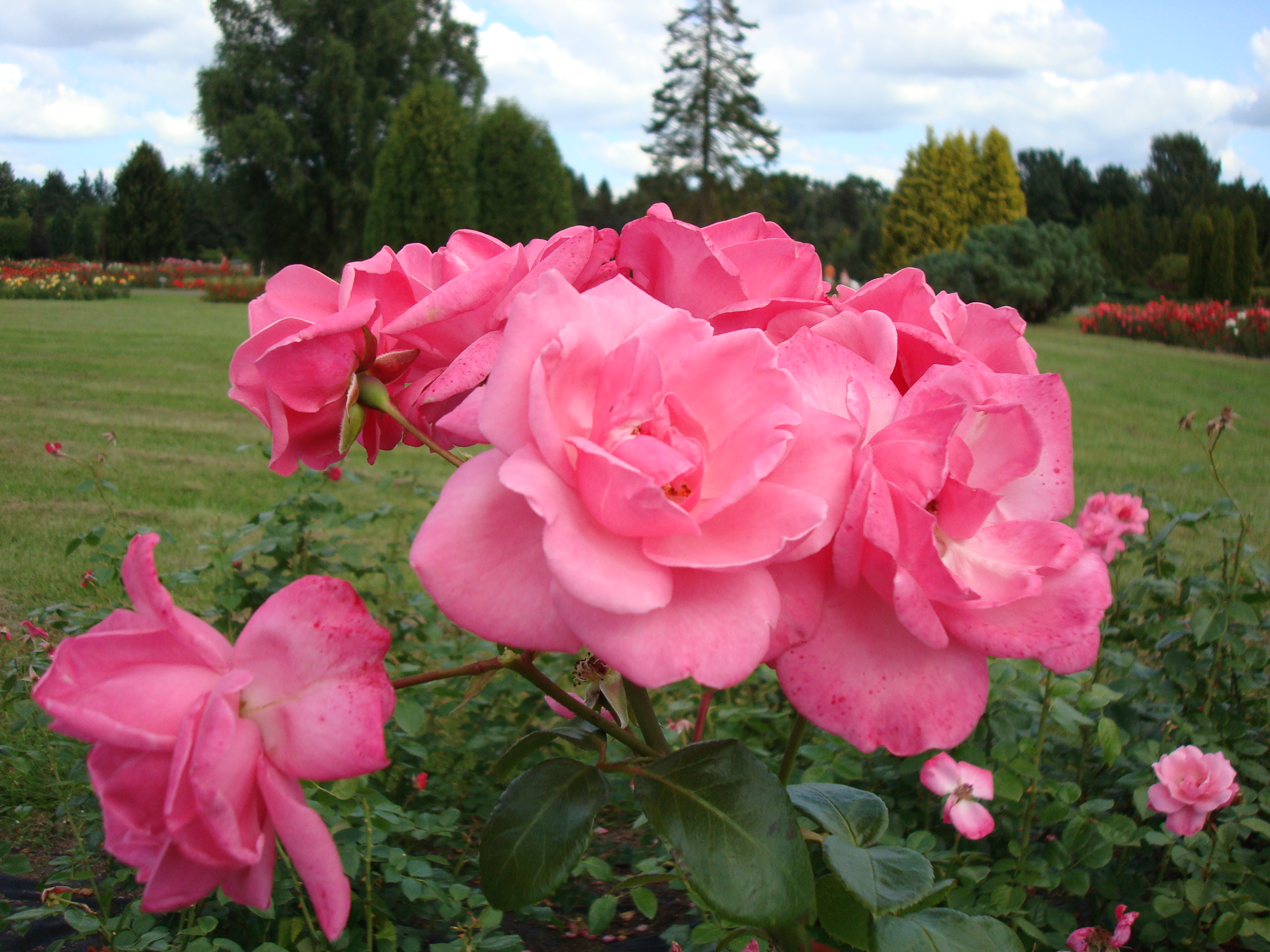 Morfoloģija. Krūms piramidāli izplests, biezi zarots, noturīgs, ar spēcīgiem, 0,9-1,3 m gariem dzinumiem. Lapas lielas, sulīgi tumši zaļas, spīdīgas un biezas. Ziedi tīri rozā, vidēji lieli (7-9 cm), puspildīti (9-15 vainaglapas), skaisti veidotās ziedkopās pa 5-17 katrā. Ziediem piemīt viegli gaisīgs rožu aromāts, zied ļoti bagātīgi no jūlija sākuma līdz pat salam.