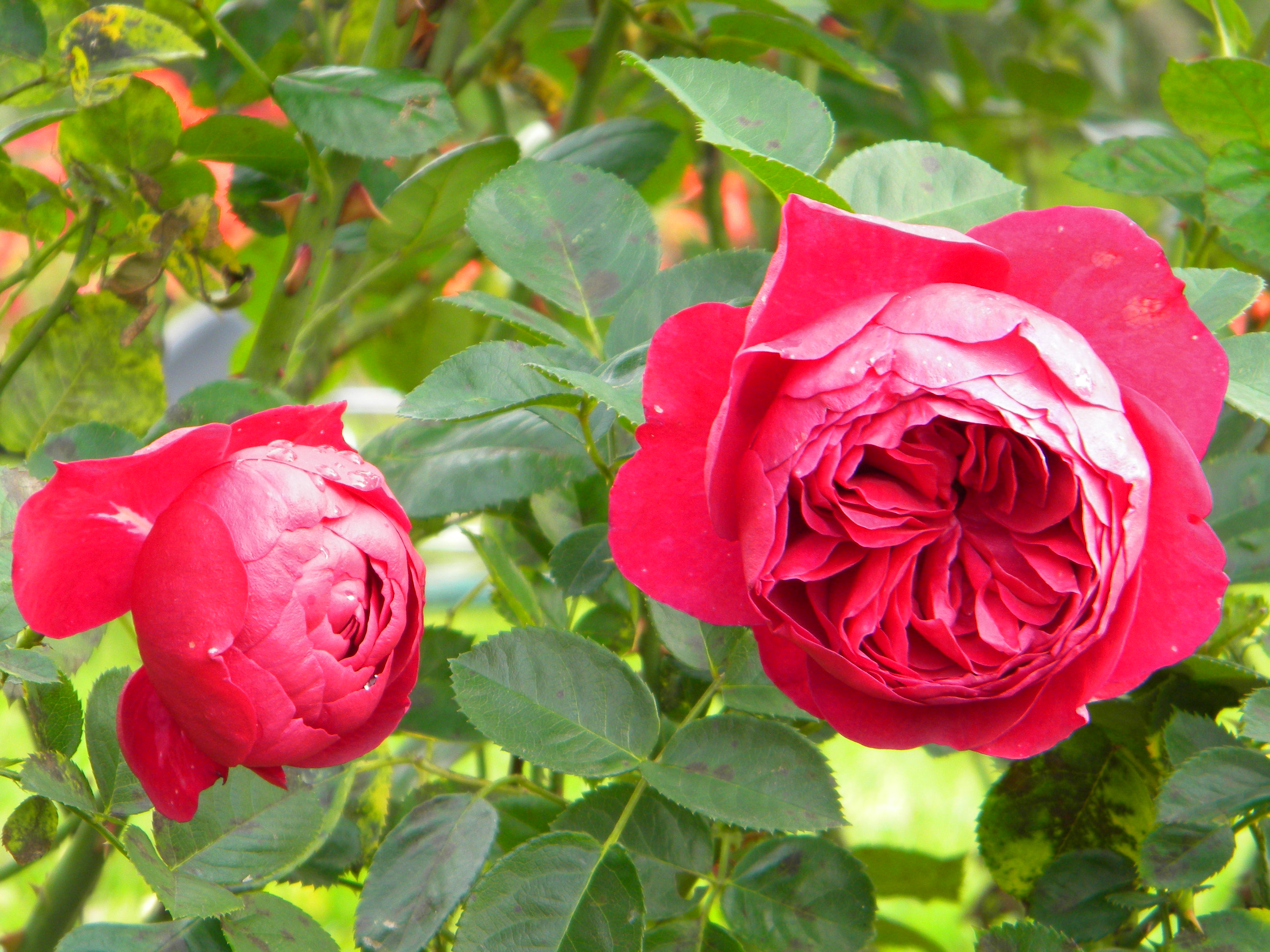 Morfoloģija. Krūms stāvs, kompakts, maz zarots ar ļoti blīviem, spēcīgiem, līdz 0,7-0,8 m augstiem dzinumiem. Lapas lielas, tumši zaļas, biezas, ādainas, spīdīgas. Ziedu krāsa purpura ar violetu nokrāsu. Ziedi lieli (8-10 cm), ļoti pildīti (25-40 vainaglapas), izkārtoti pa vienam vai pa 3-5 nelielās ziedkopās dzinumu galos. Ziediem īpatnēja lodveida forma, kas atplaukst ļoti lēnām, pakāpeniski atveroties un izplatot ap sevi tīkamu, vieglu aromātu.