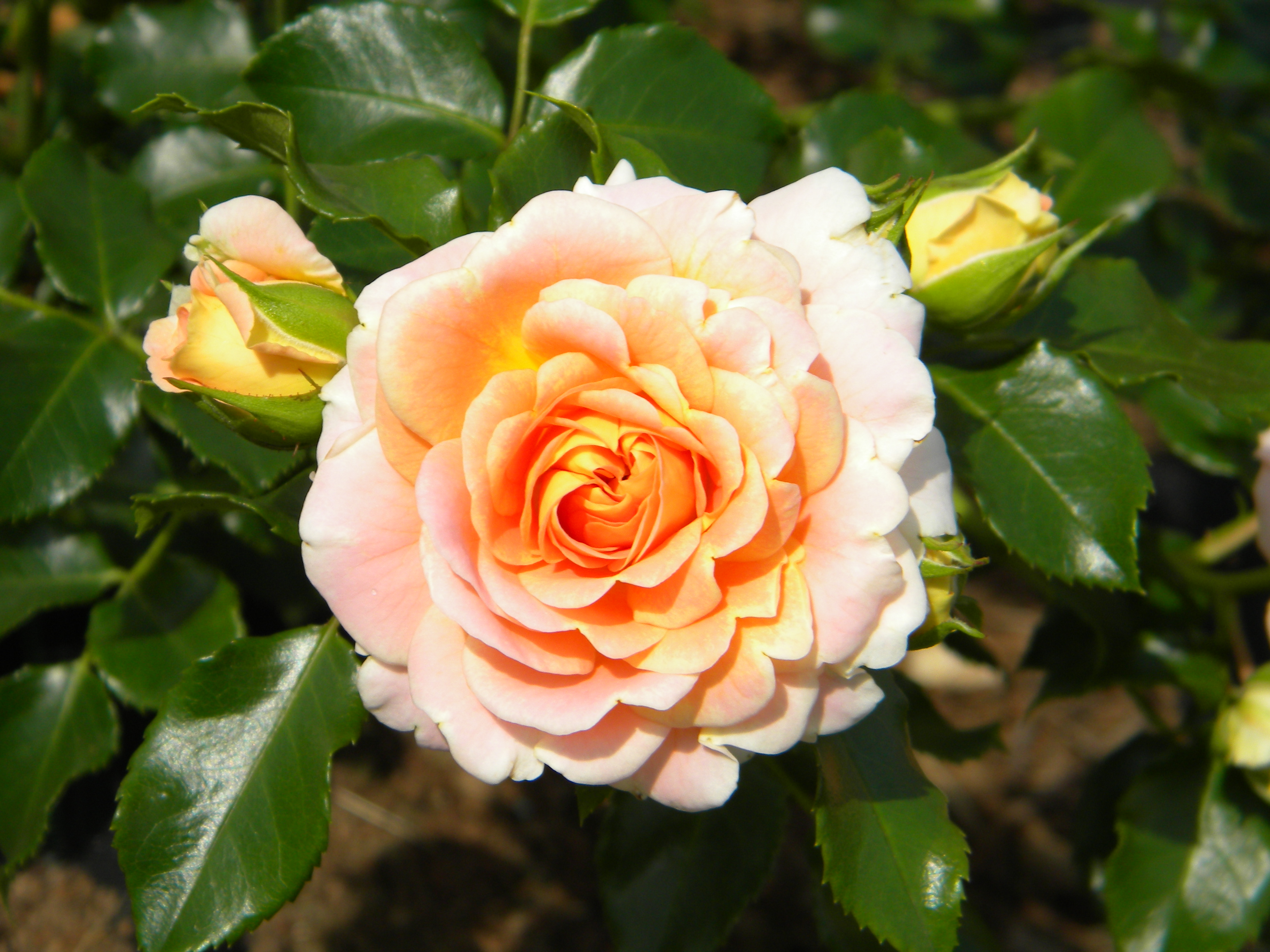 Morfoloģija. Krūms piramidāli izplests, biezi zarots, 0,7-0,9 m augsts, ārējiem ziedošiem dzinumiem tieksme noliekties. Lapas vidēji lielas, tumši zaļas, spīdīgas, blīvi sakārtotas uz dzinumiem. Ziedi gaiši aprikožu dzelteni ar nelielu lašu krāsas tonējumu, vidēji lieli (7-8 cm), ļoti pildīti (26-40 vainaglapas), plakani, izkārtoti pa vienam vai 3-5 ziedkopā dzinumu galos. Zied ilgi, bagātīgi un atkārtoti līdz rudenim.