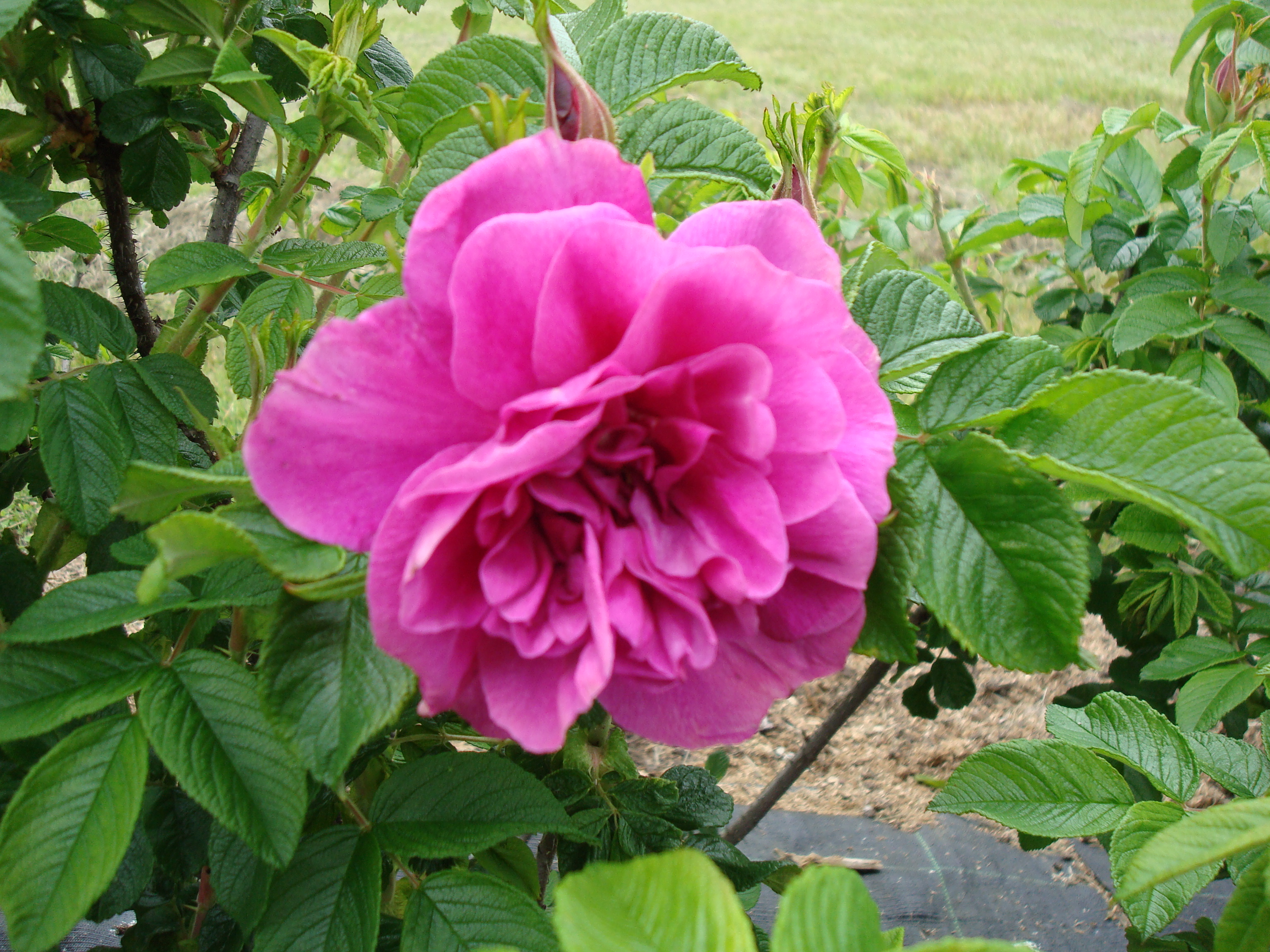 Morfoloģija. Krūms stāvs, spēcīgi zarots, līdz 1,3 m augsts ar biezi noklātiem, dzeloņainiem dzinumiem. Lapas tumši zaļas, lielas, rievainas, nedaudz matētas. Ziedi violeti vecrozā, gandrīz nebalo, lieli (7-9 cm), pildīti (17-25 vainaglapas), tiem spēcīga krustnagliņu smarža, sakārtoti pa 3-5 dzinumu galos. Ziedus pēc pārziedēšanas nevajadzētu steigties nogriezt, jo vasaras otrā pusē to lielākā daļa veido augļus, zied bagātīgi līdz vēlam rudenim.