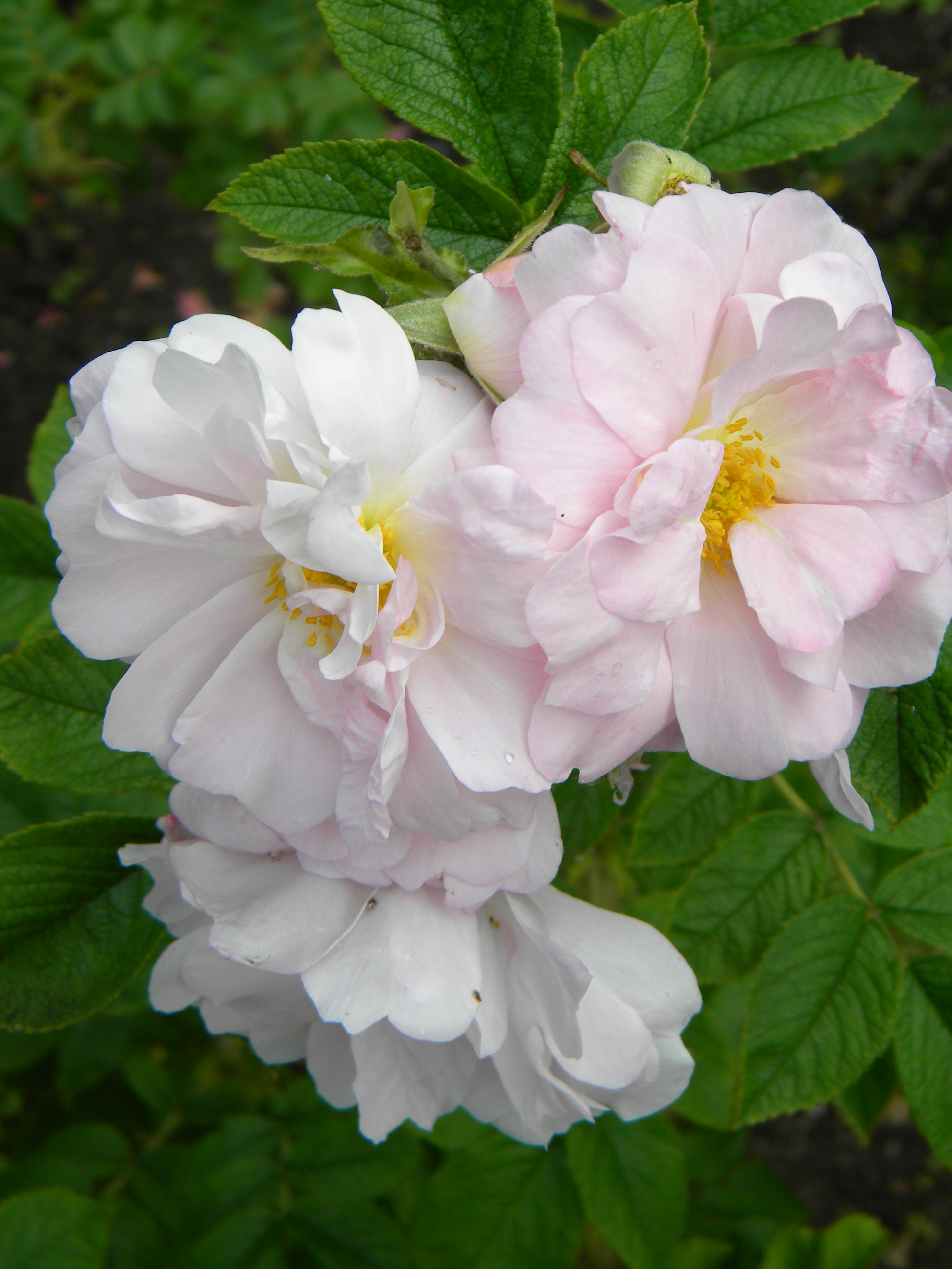 Morfoloģija. Krūms piramidāli izplests, labi zarots, 1,2-1,7 m augsts, ļoti dzeloņainiem dzinumiem, lielo dzeloņu gali noliekti uz leju, daudz sīku, gaiši zaļu dzeloņu. Lapas vidēji lielas, zaļas, ar vāju spīdumu, rievainas. Ziedi bāli rozā ar tumšāku vidu, lieli (6-8 cm), pildīti (27-30 vainaglapas), kausveida, pa 6-25 ziedkopā, tiem maiga ābolu smarža. Noziedējušie ziedi jānogriež, lai veicinātu jaunu pumpuru veidošanos. Sāk ziedēt jūnija vidū, zied bagātīgi un gandrīz nepārtraukti līdz salam.
