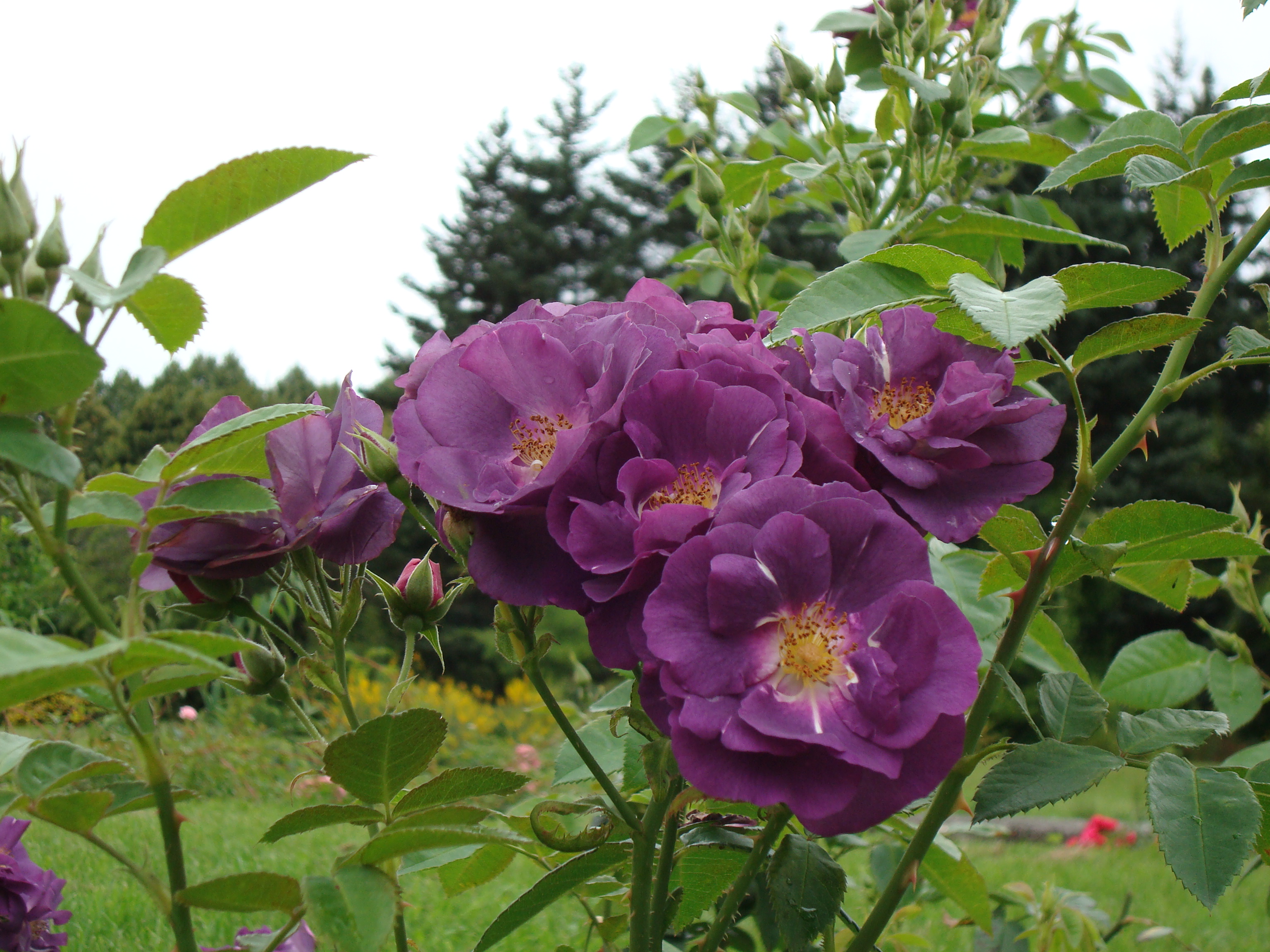 Morfoloģija. Krūms izteikti stāvs, kompakts, 0,6-0,7 m augsts, labi zarots, dzinumi bagātīgi klāti spēcīgiem dzeloņiem. Lapas vidēji lielas, gaiši zaļas, nedaudz spīdīgas, biezs lapojums. Ziedi purpurvioleti (viena no zilākajām rožu šķirnēm) ar nelielu, baltu centru, vidēji lieli (6-7 cm), puspildīti (9-16 vainaglapas), ļoti smaržīgi, sakārtoti pa 3-7 ziedkopā, zied bagātīgi un atkārtoti līdz vēlam rudenim.